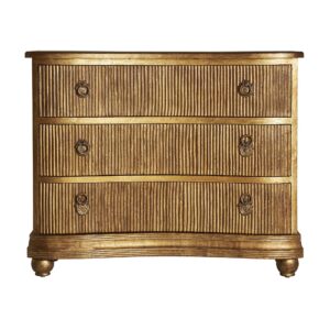 La Cómoda Vernon está fabricada en madera de mango, un material conocido por su resistencia y durabilidad, combinado con detalles en hierro que realzan su robustez y estética refinada. Su acabado en oro viejo no solo resalta su carácter clásico, sino que también aporta calidez y sofisticación al ambiente.
