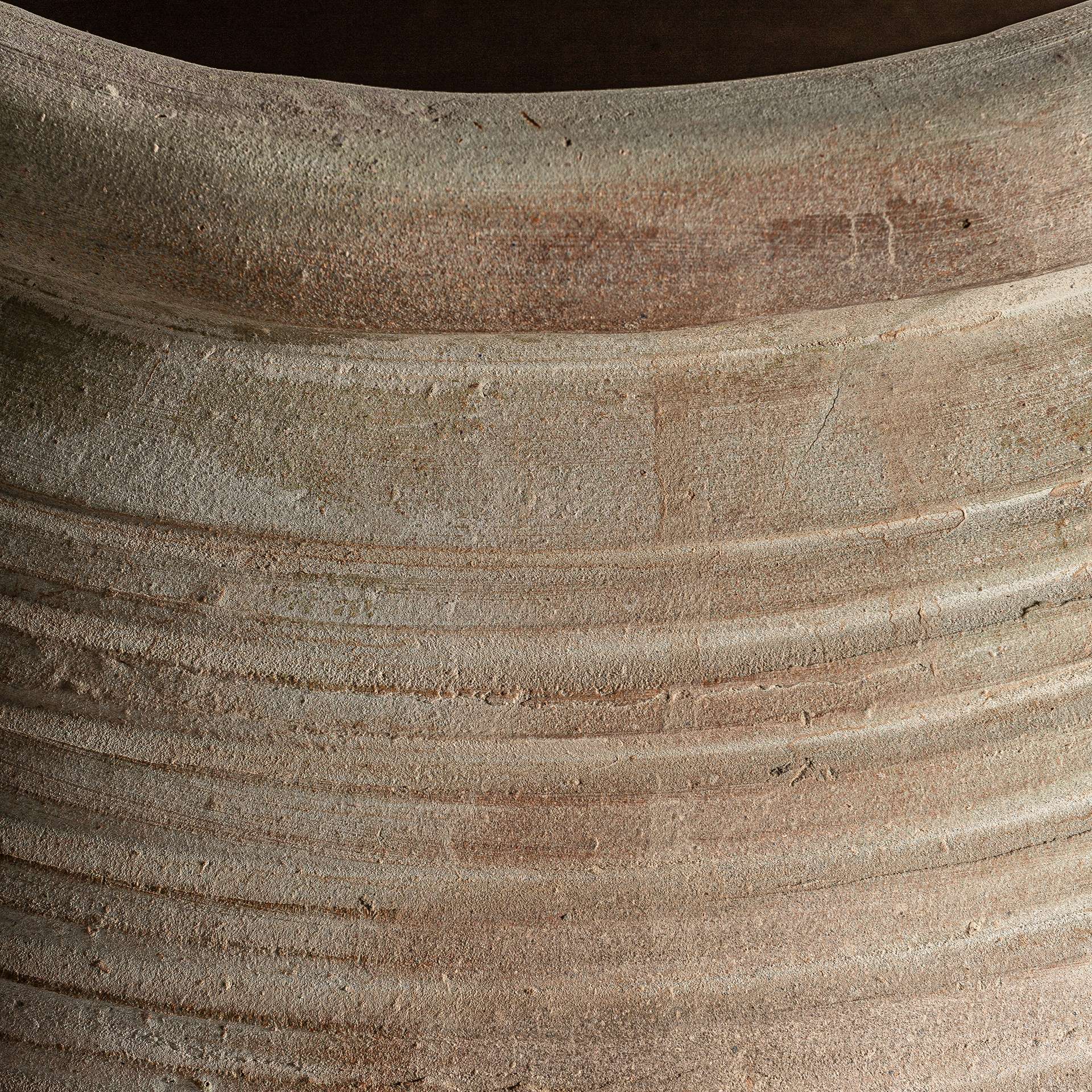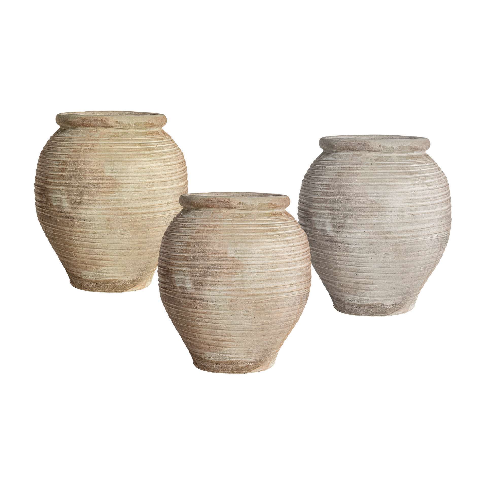 Tinaja kansara de estilo vintage fabricado en arcilla en color beige con acabado envejecido.