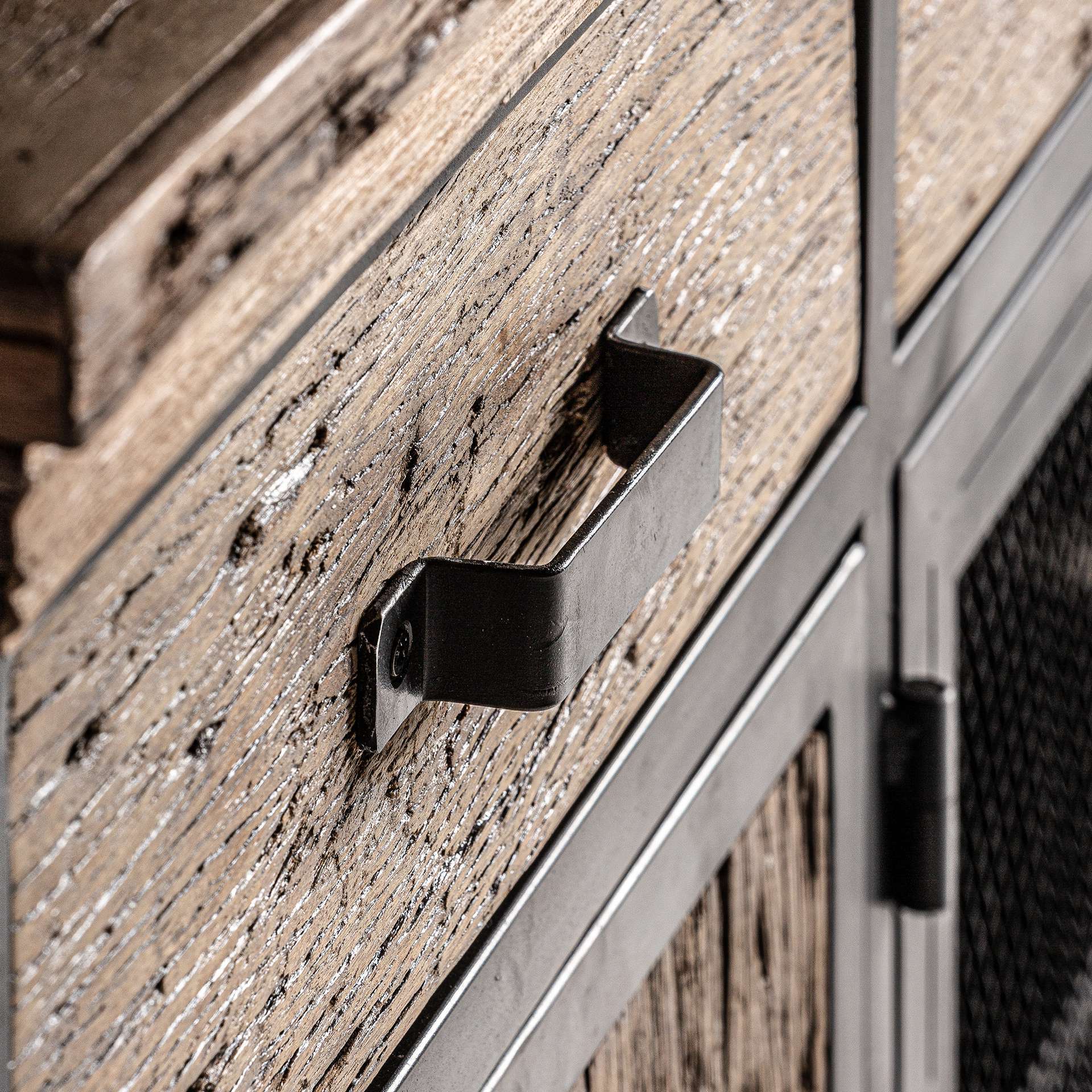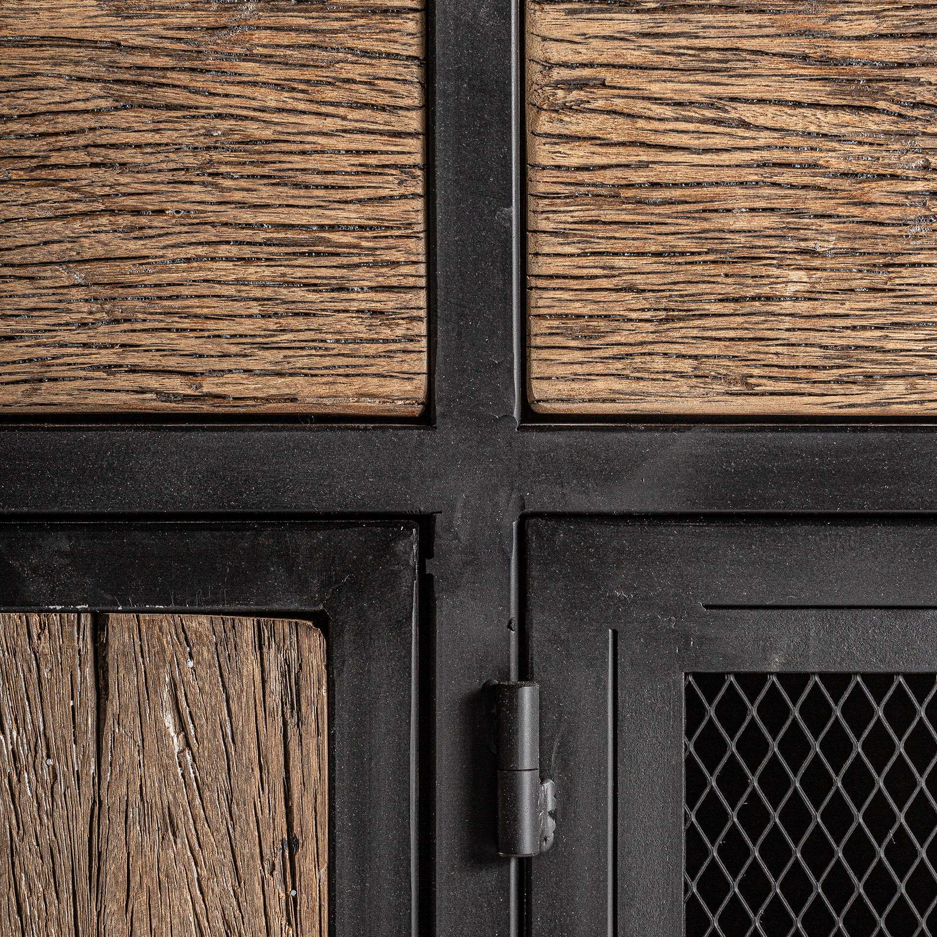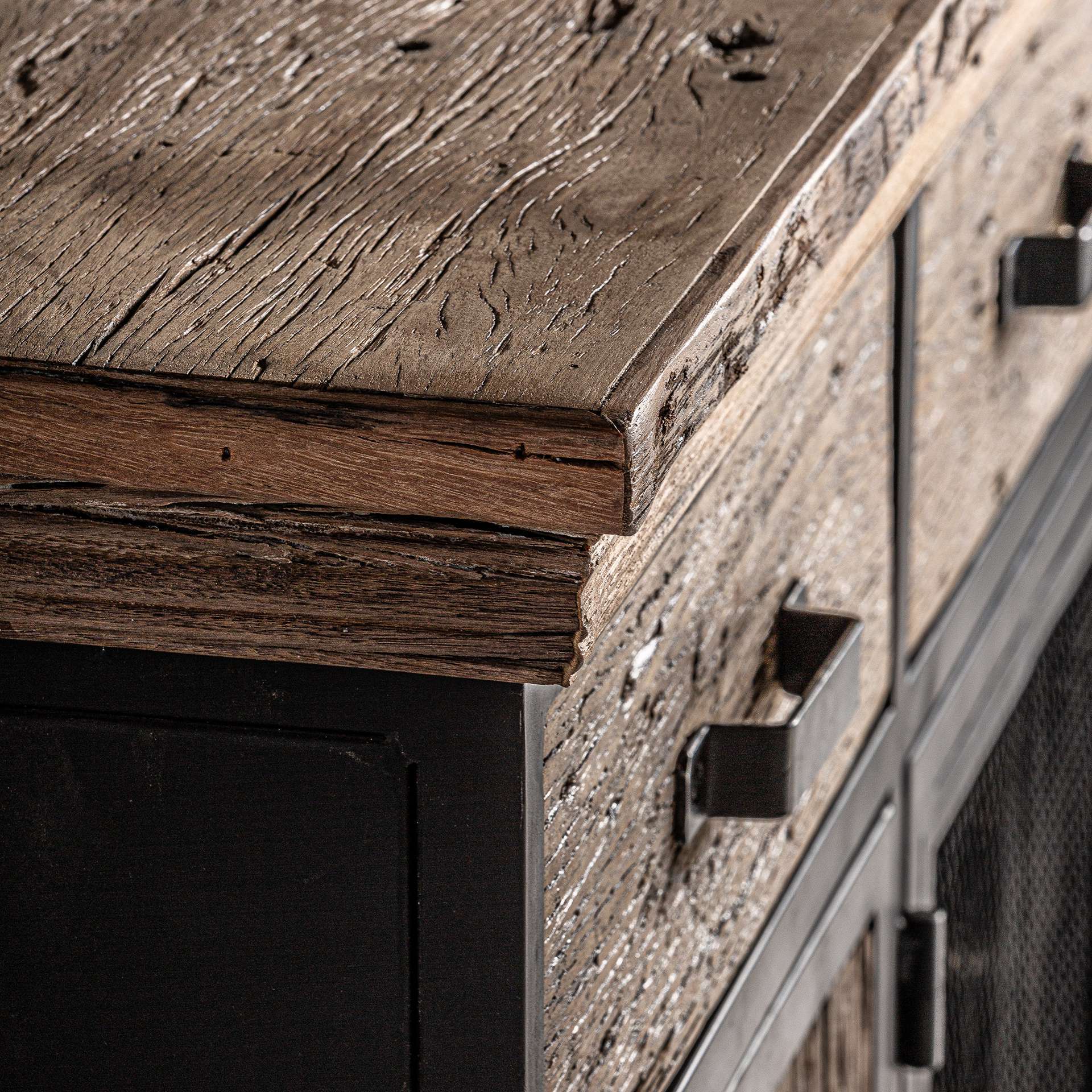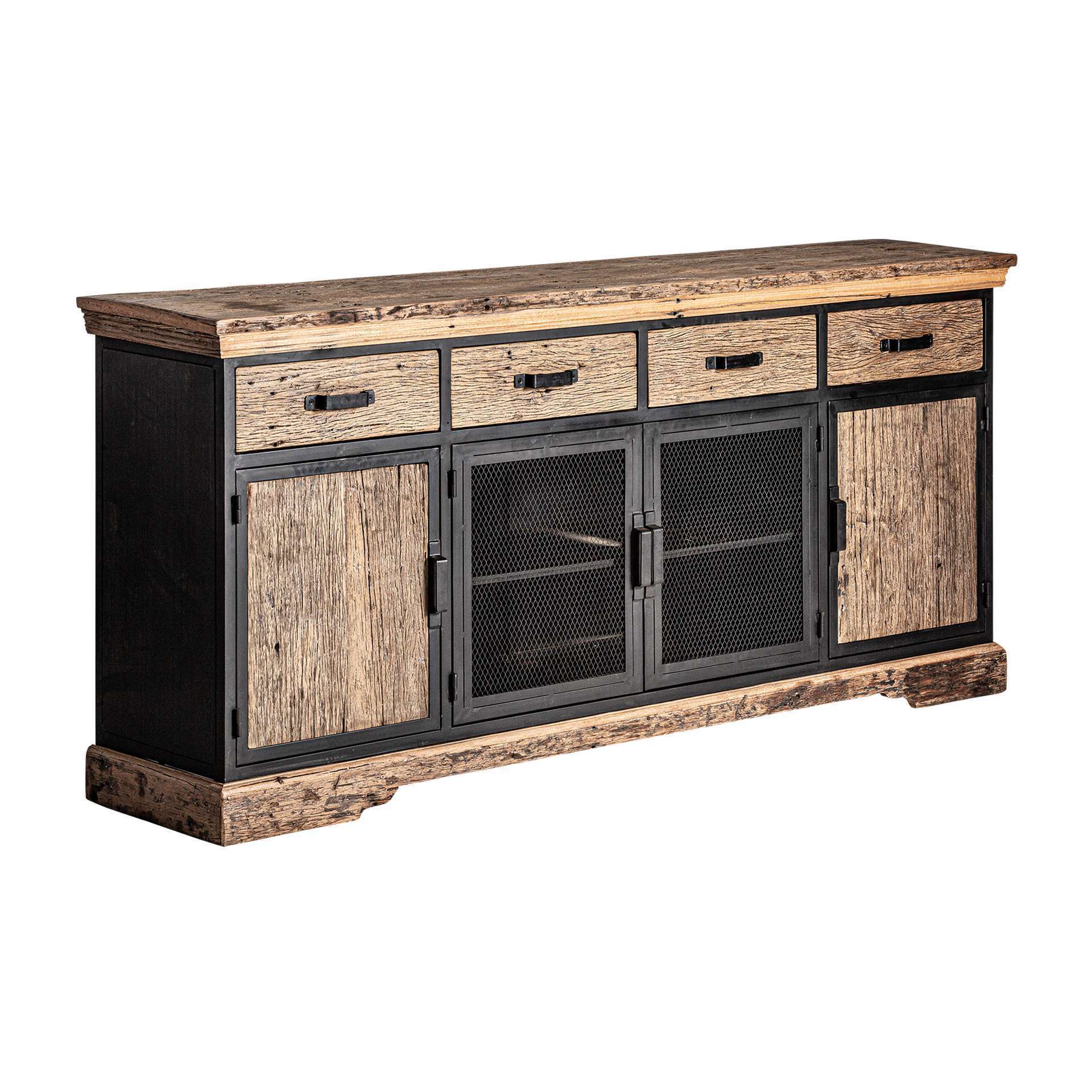 Buffet de hierro y madera recuperada, perteneciente a la familia de buffets, color natural, de estilo nórdico. Medidas: 200 largo x 45 ancho x 91 alto y peso 110,5 kg.