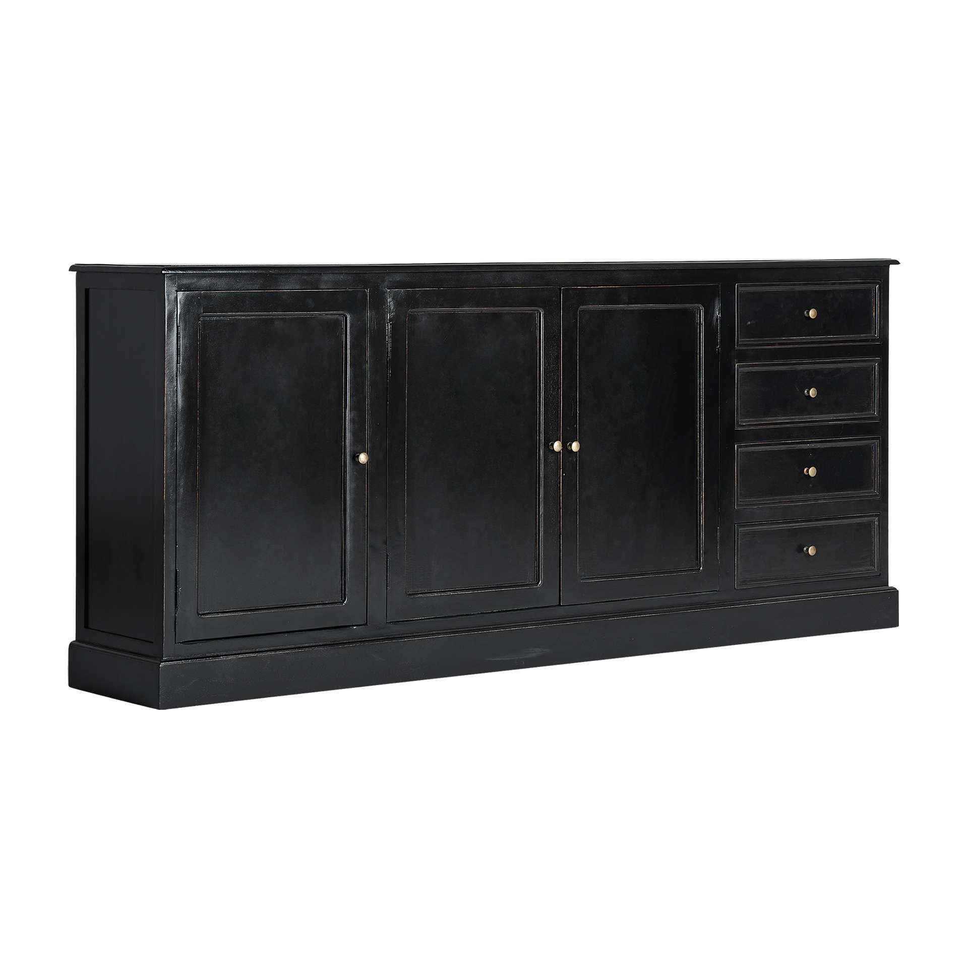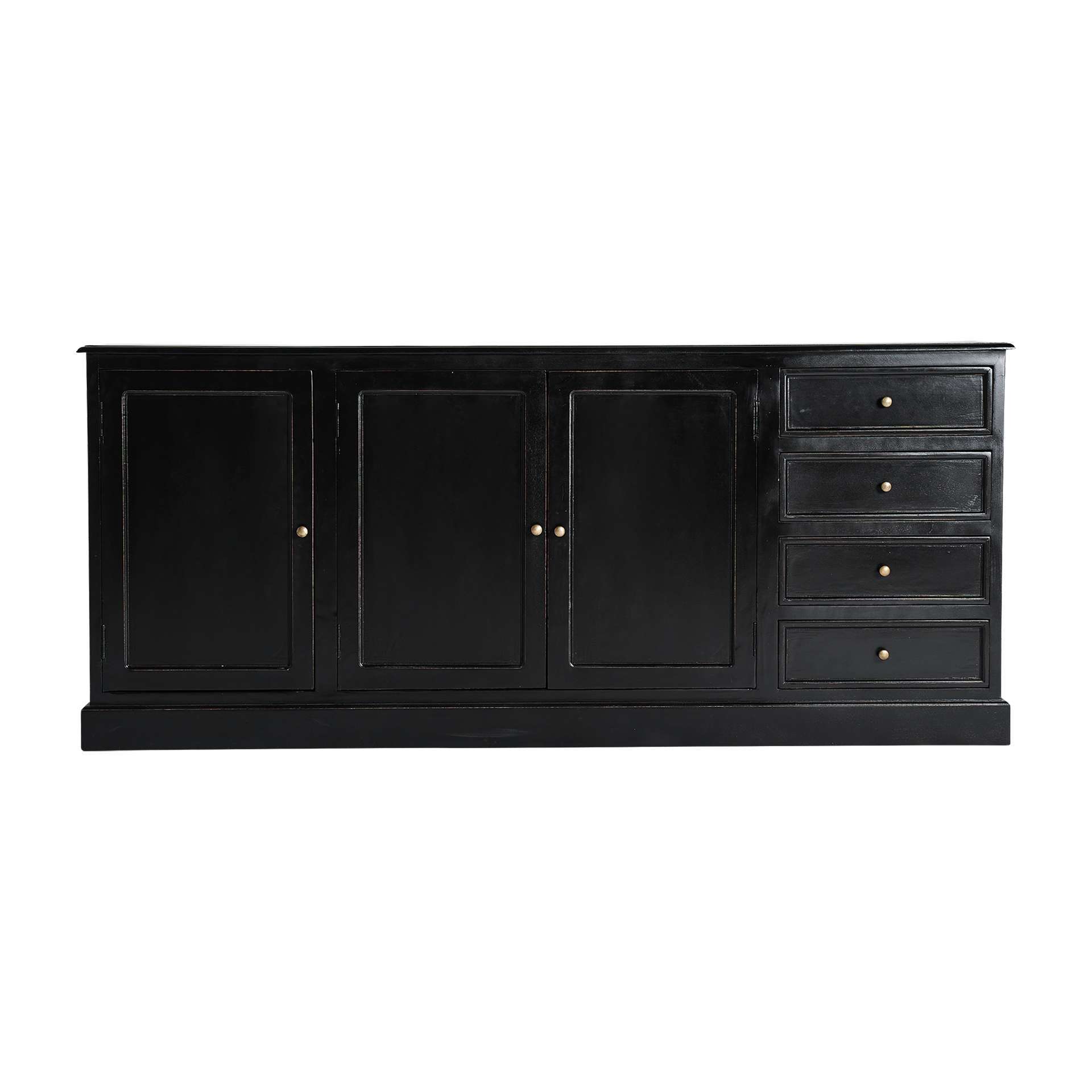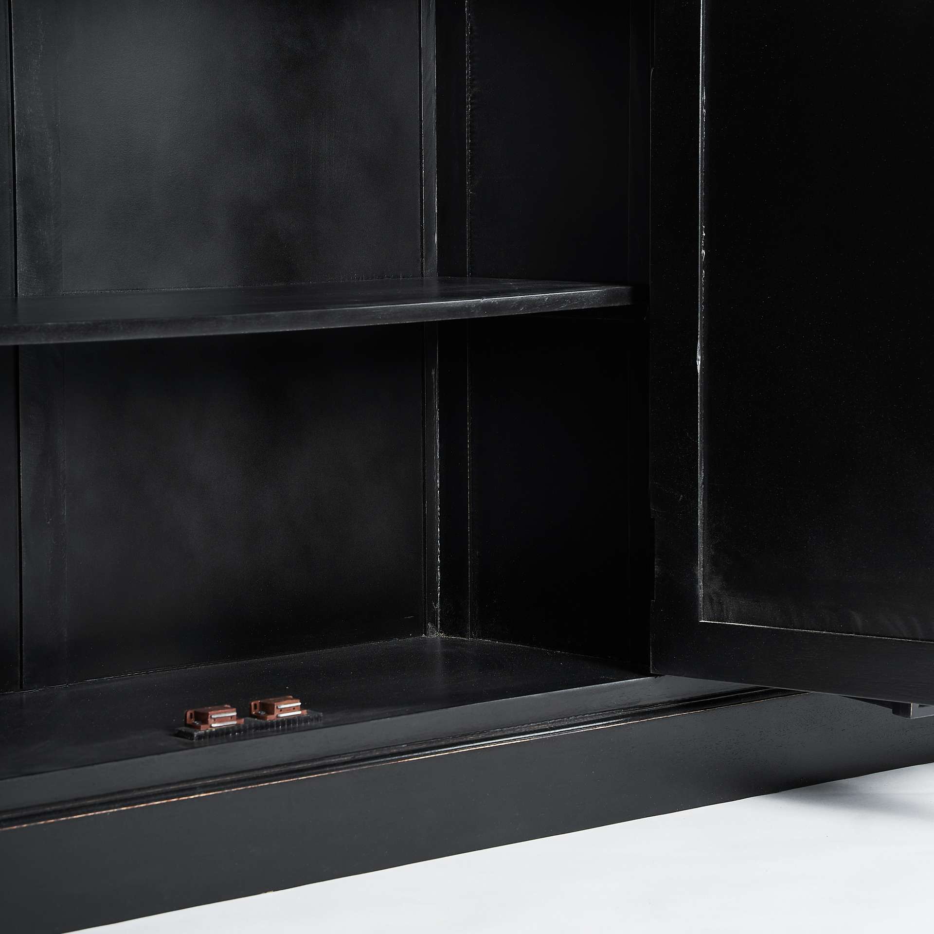 Aparador zenica de estilo colonial fabricado en madera de mango en color negro combinado con vidrio y madera dm. Compatible con: 33010.
