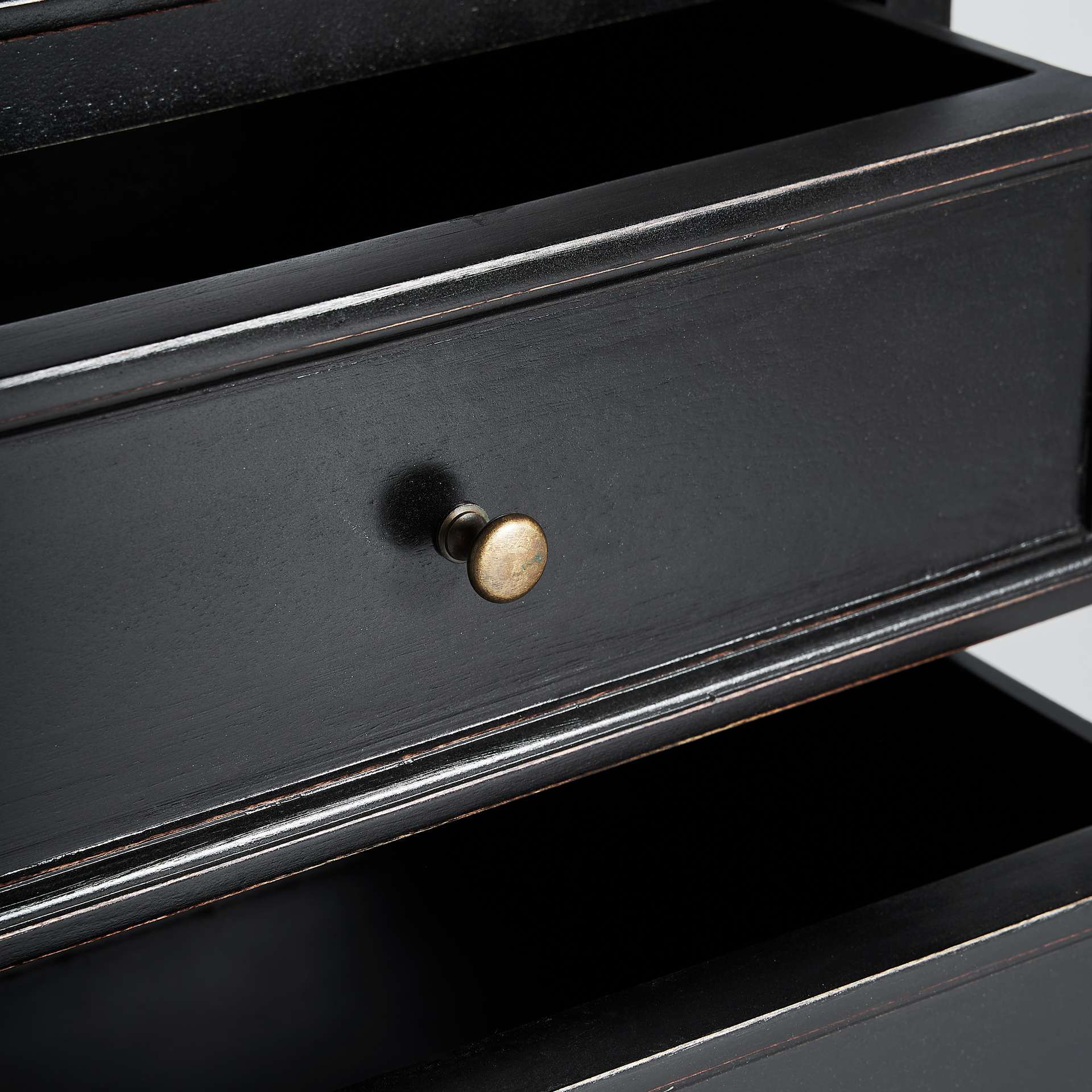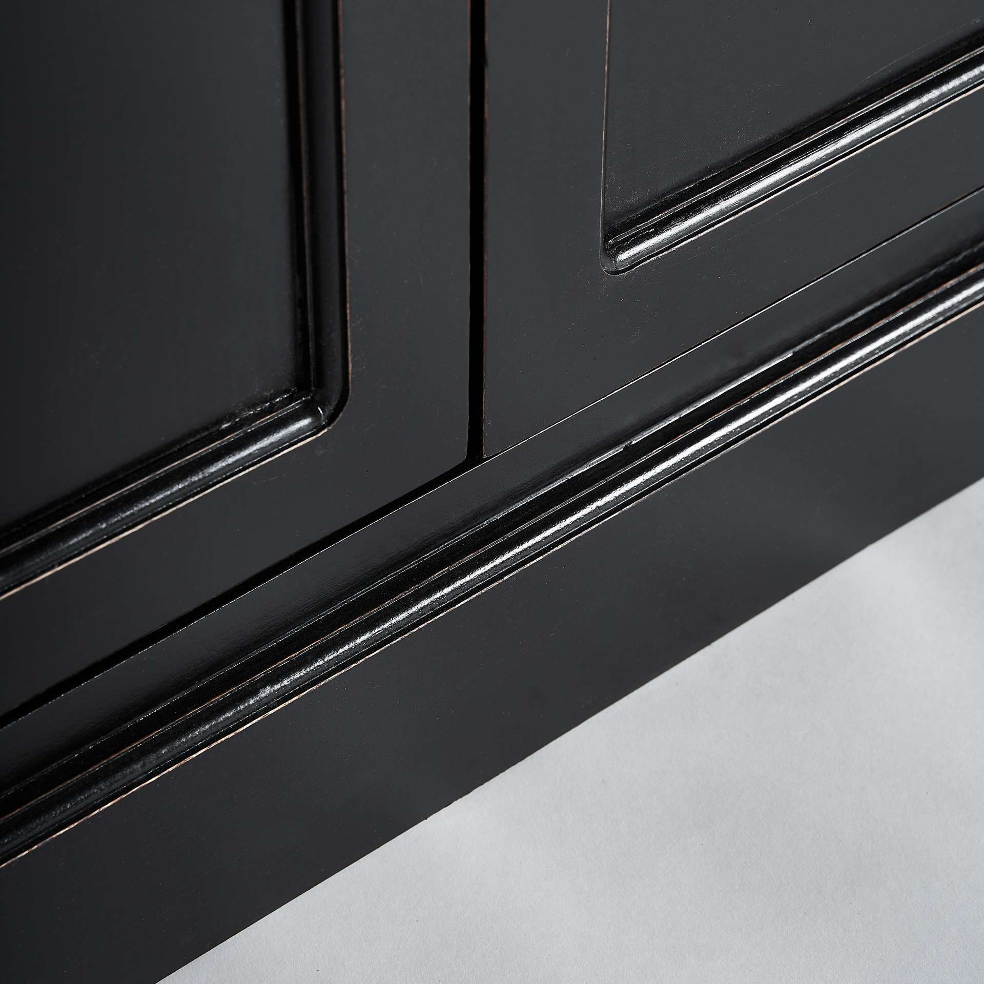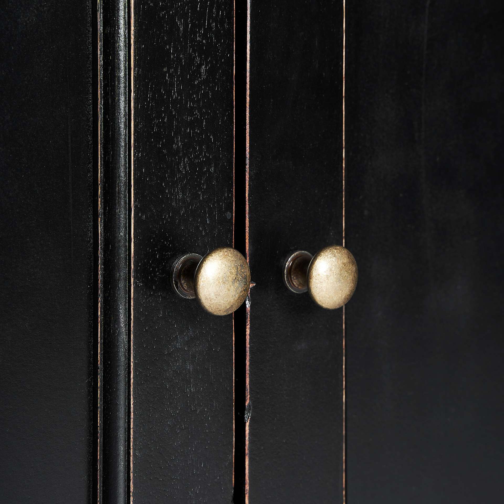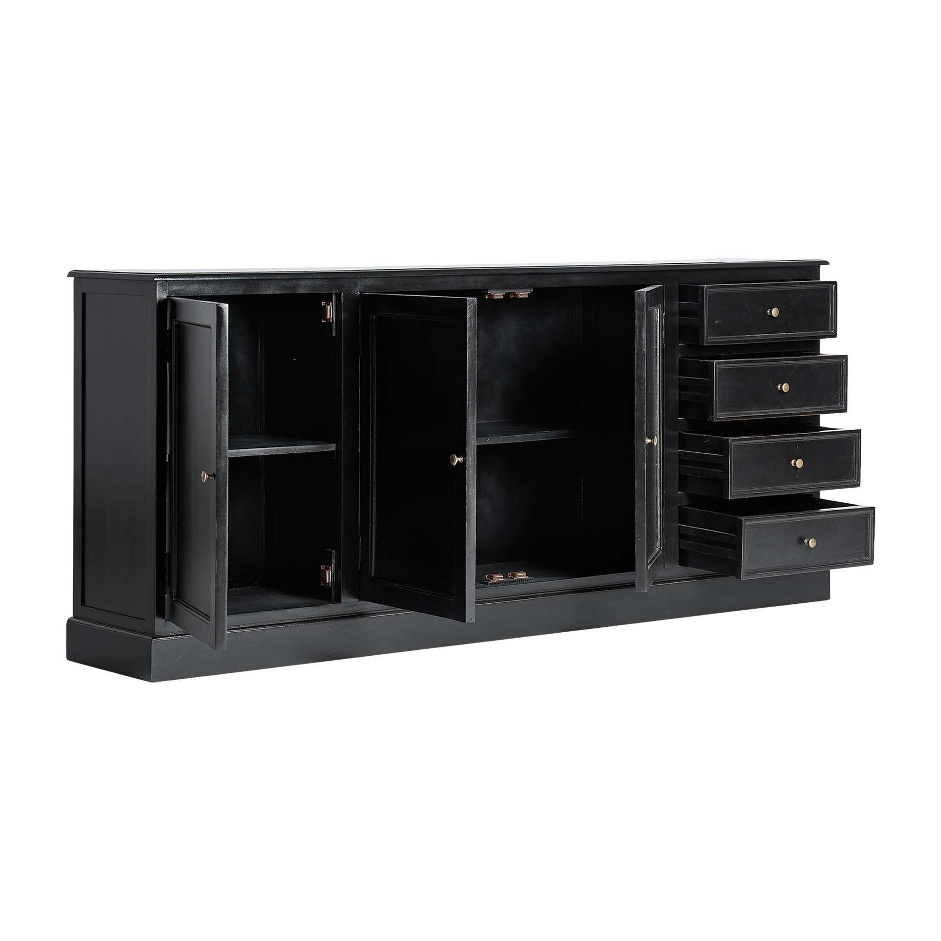 Aparador zenica de estilo colonial fabricado en madera de mango en color negro combinado con vidrio y madera dm. Compatible con: 33010.