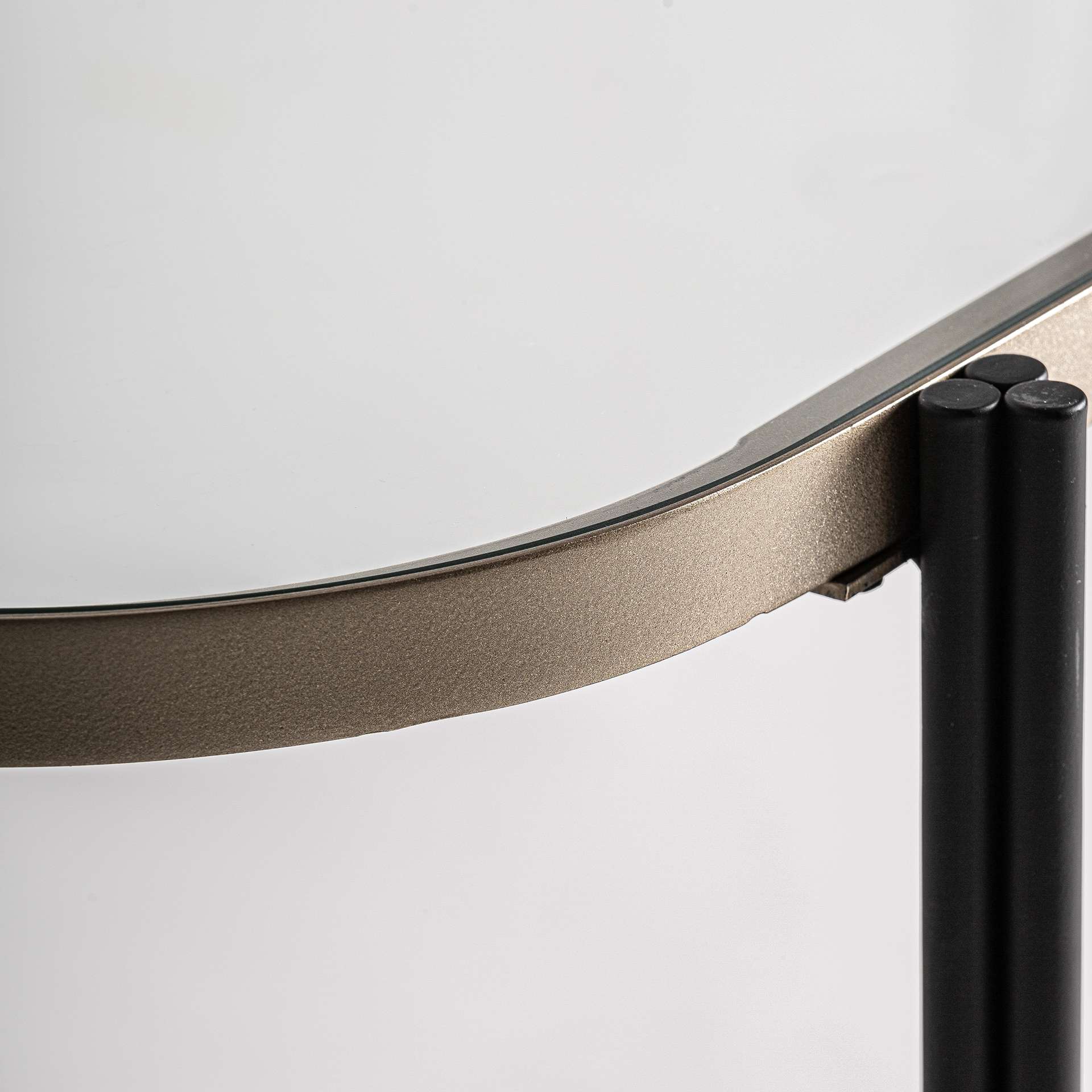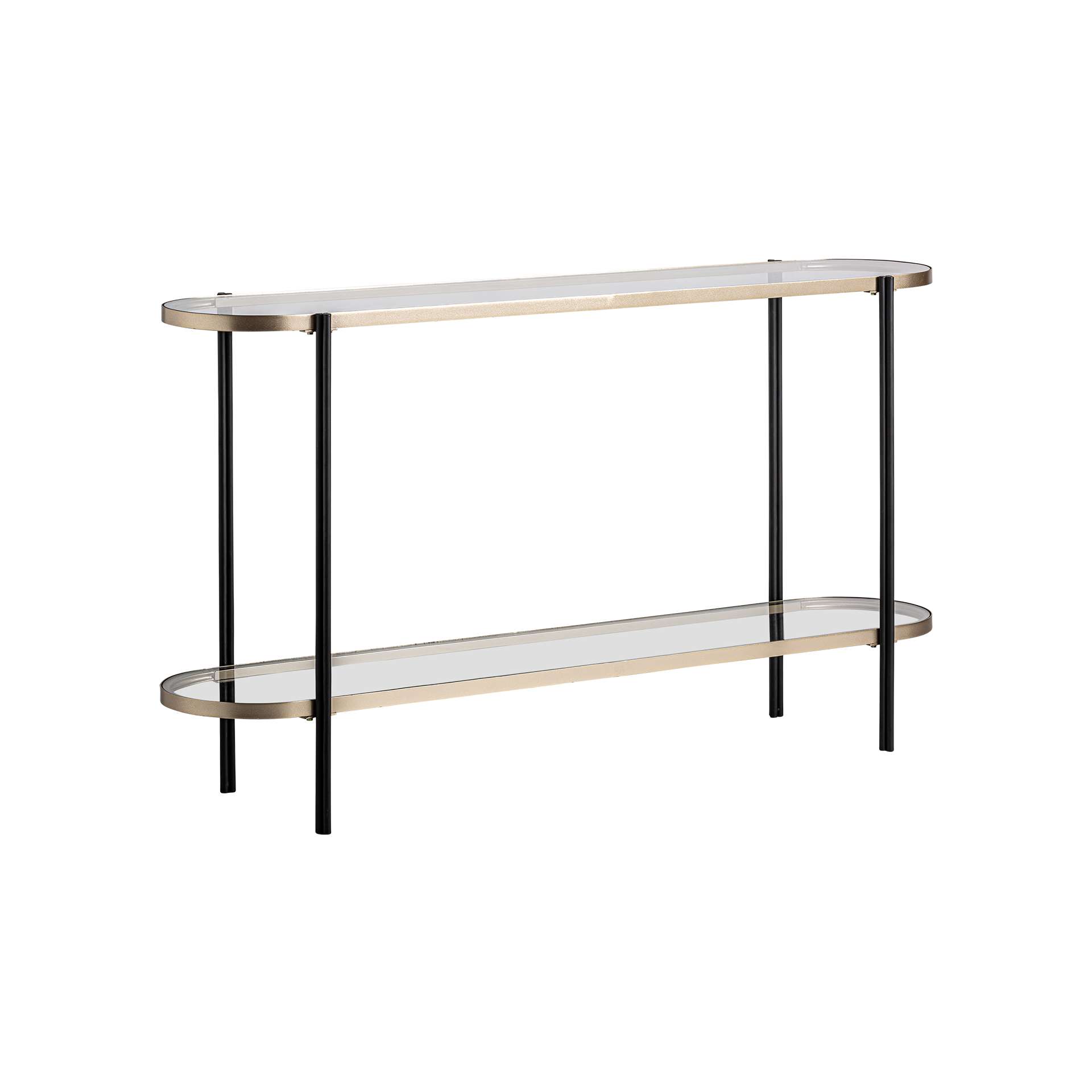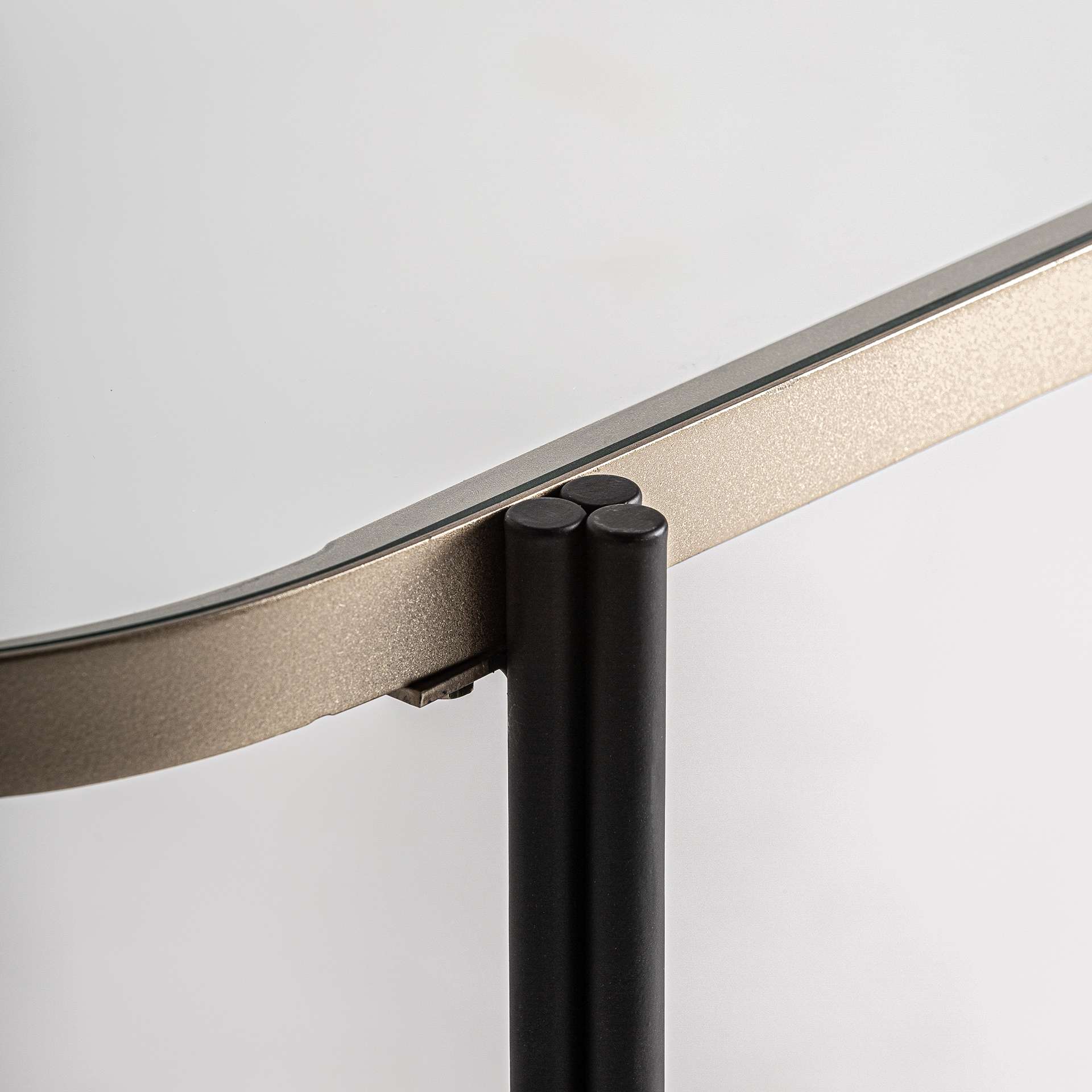 Consola lans de estilo art deco, fabricado en hierro en color negro oro, combinado con cristal. Producto desmontable.