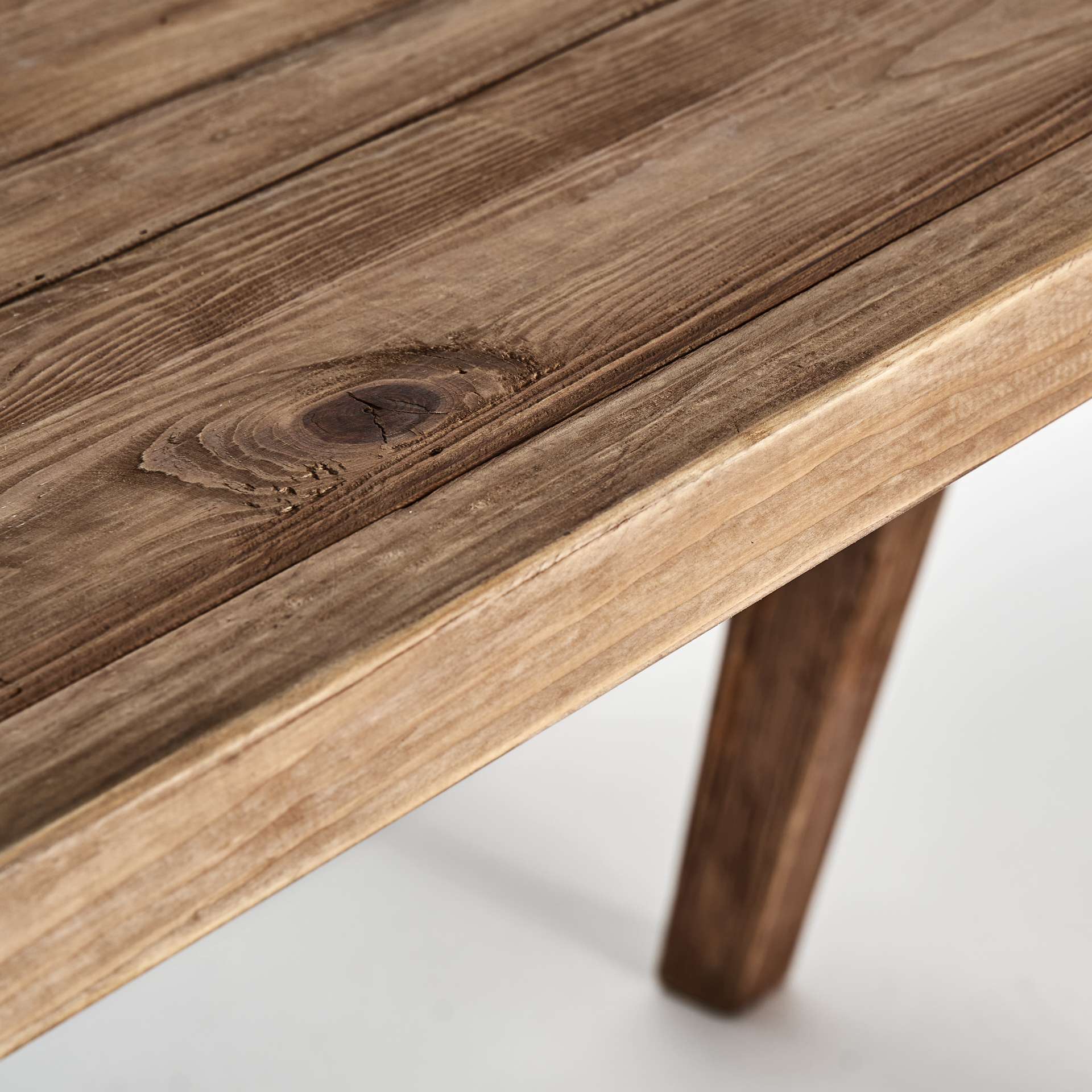 Escritorio de madera de pino reciclado, perteneciente a la familia de escritorios, color natural, de estilo contemporáneo. Fabricación artesanal. Entendemos las variaciones de tonalidad, tamaño y forma o ciertas imperfecciones (grietas, nudos, marcas) como un valor añadido que la convierten en pieza única. Medidas: 148 largo x 80 ancho x 75 alto y peso 30,1 kg. Desmontable.