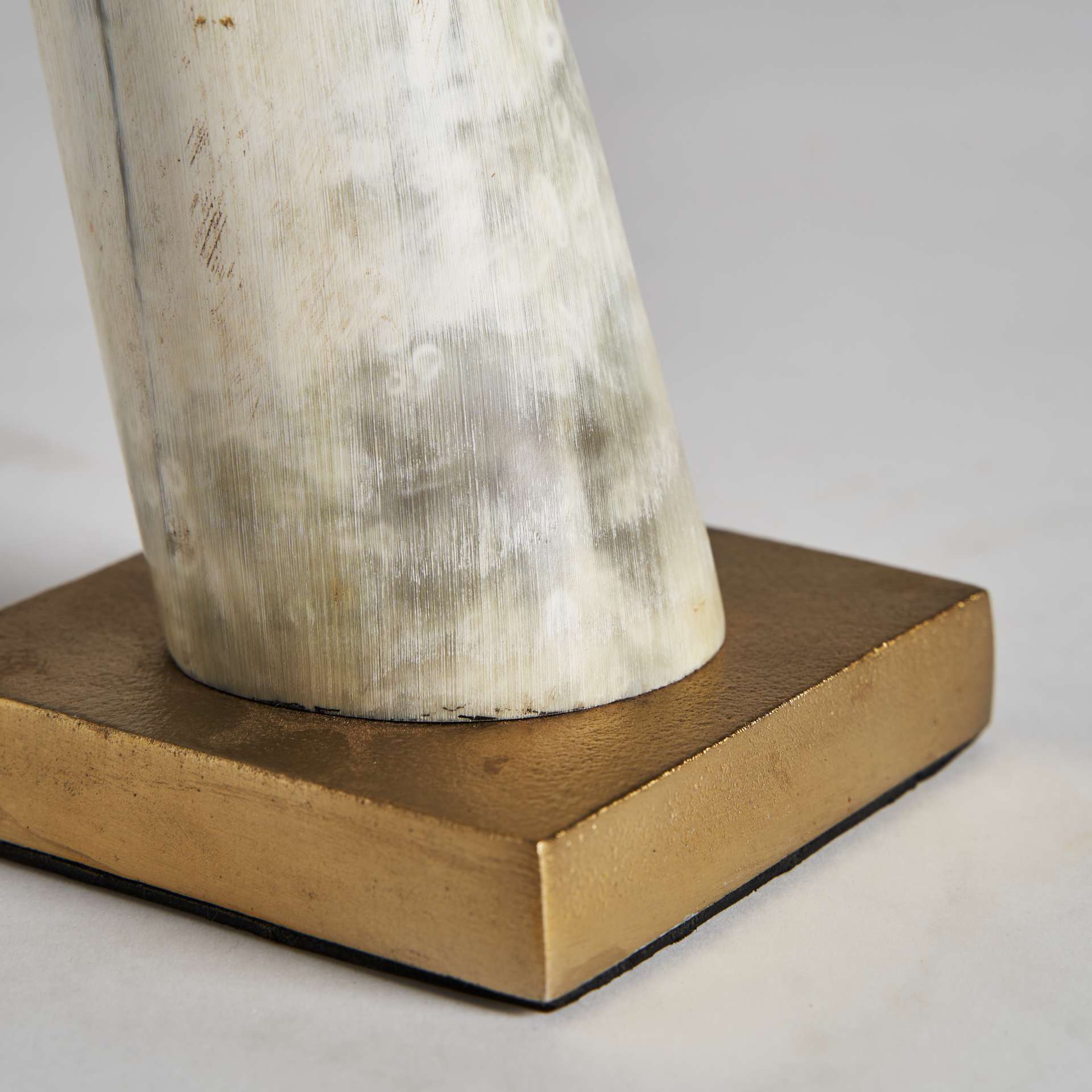 Escultura de resina y aluminio, perteneciente a la familia de esculturas/figuras, color marrón/blanco, de estilo nórdico. Puede variar de tonalidades. Medidas: 11 largo x 11 ancho x 52 alto y peso 1,2 kg.