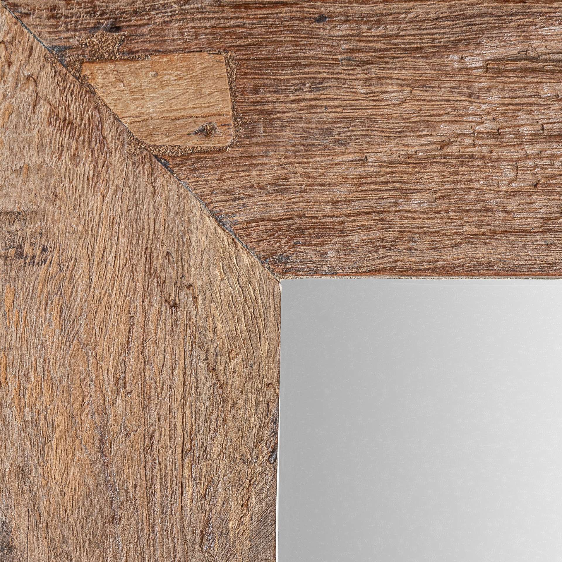 Espejo de madera de teka, perteneciente a la familia de espejos, color natural, de estilo colonial. Medidas: 65 largo x 3 ancho x 150 alto y peso 15,6 kg. Incluye anclaje pared.