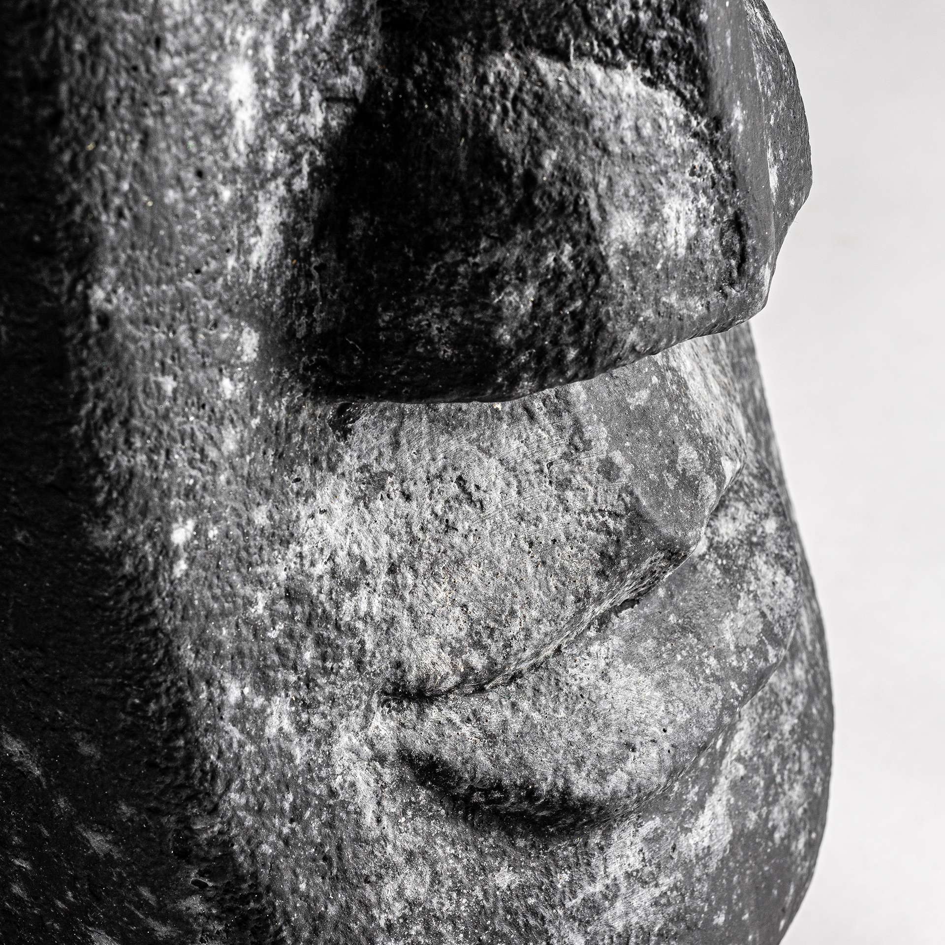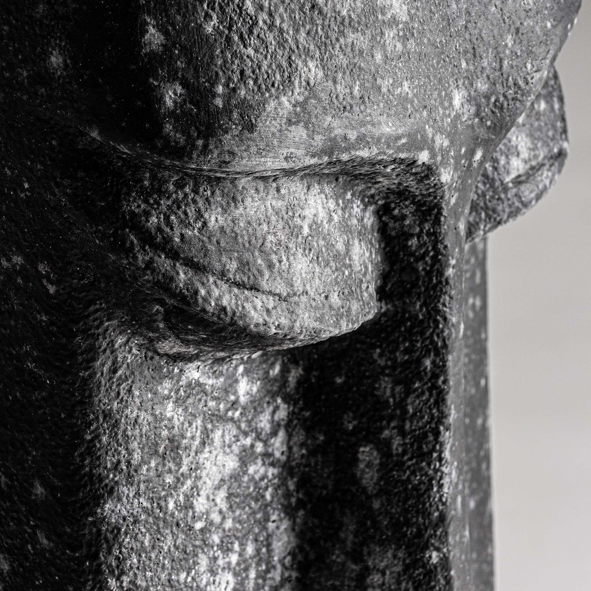 Figura oriental de cemento, perteneciente a la familia de esculturas, color negro, de estilo contemporáneo. Medidas: 32 largo x 38 ancho x 110 alto y peso 22,4 kg.
