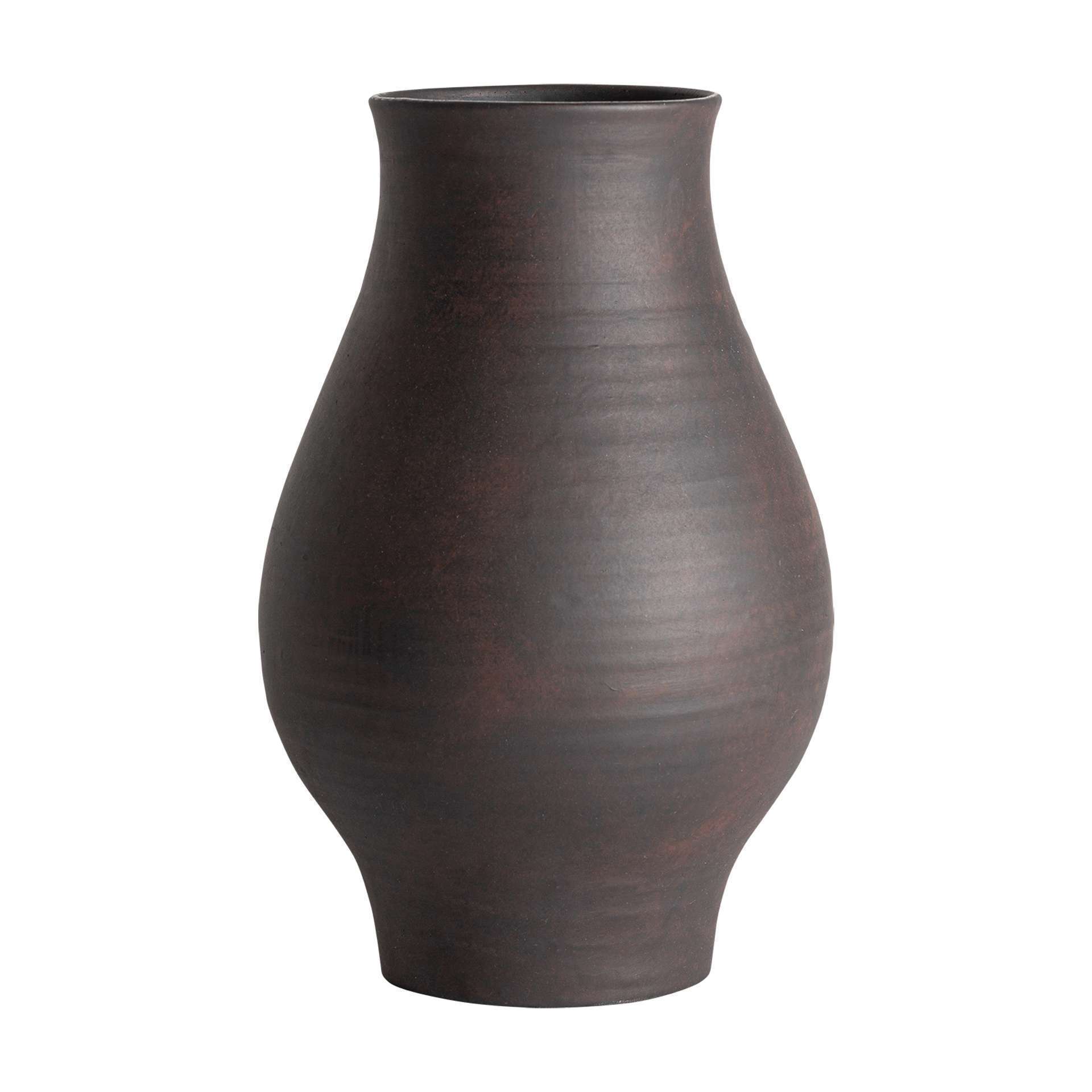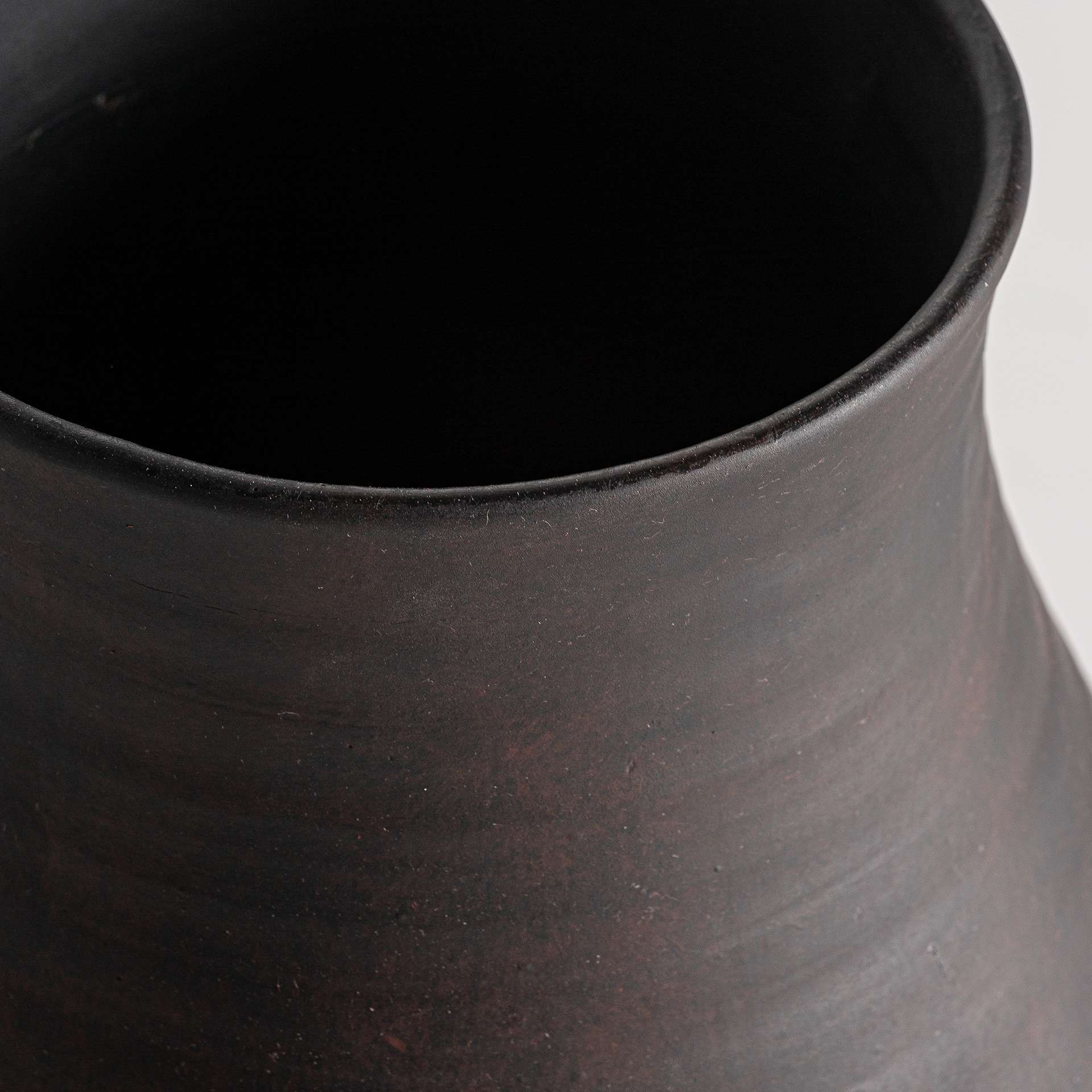Jarrón de cerámica, perteneciente a la familia de jarrones/centros, color negro, de estilo art deco. Medidas: 28 largo x 28 ancho x 43 alto y peso 4,1 kg.