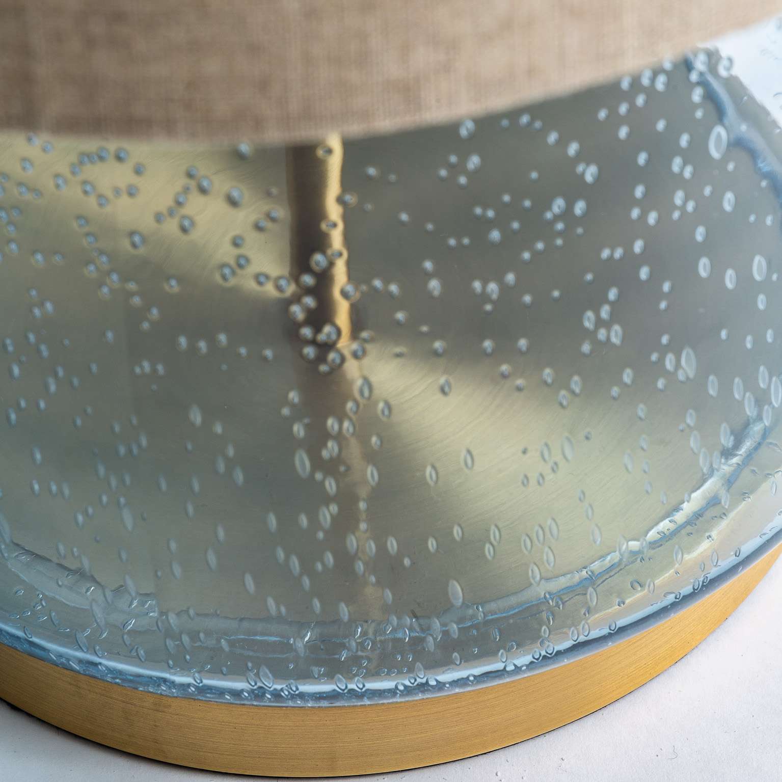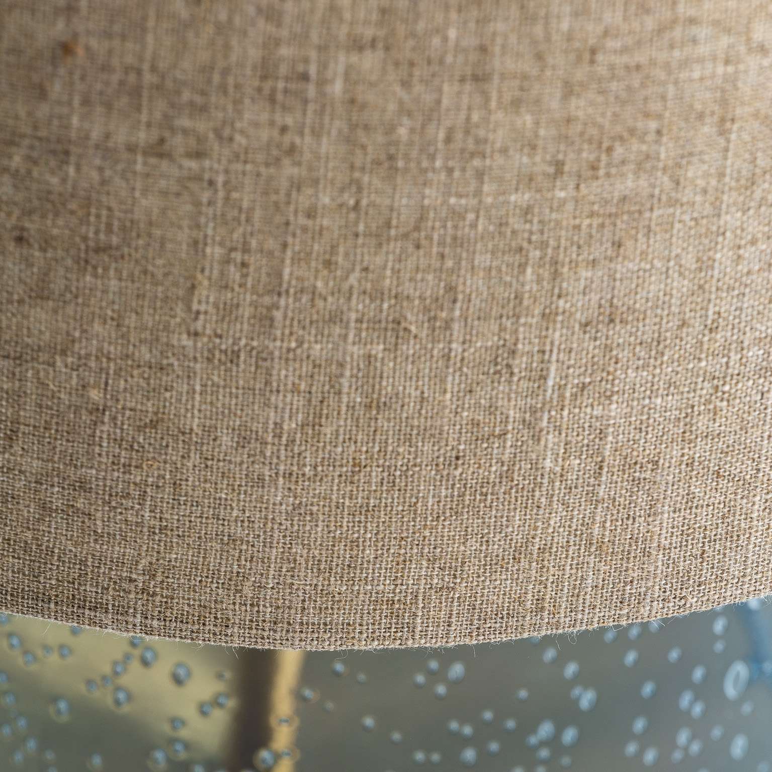 Lámpara de sobremesa de hierro y lino, perteneciente a la familia de lámparas de sobremesa, color tonos de azul, de estilo art deco. Medidas: 40,5 largo x 40,5 ancho x 60 alto y peso 4,2 kg. Desmontable. No incluye bombilla.