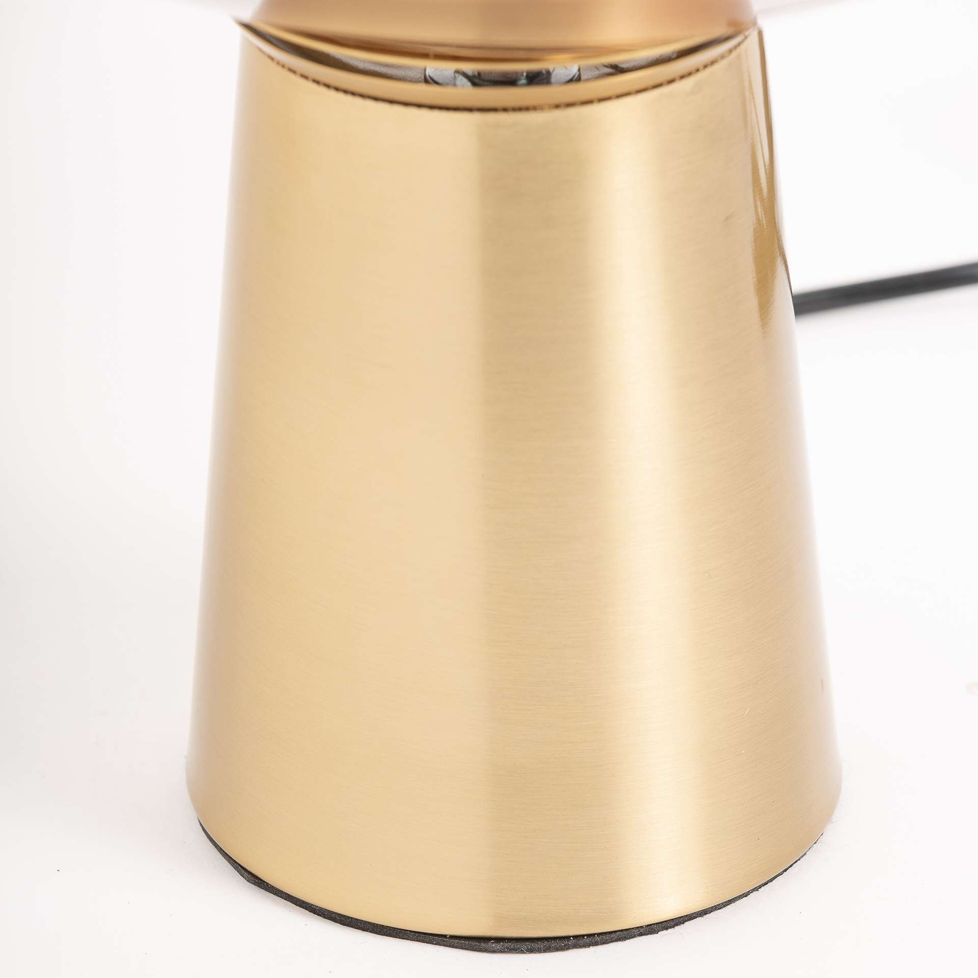 Lámpara de sobremesa de hierro y cristal, perteneciente a la familia de lámparas de sobremesa, color oro, de estilo art deco. Medidas: 36 largo x 36 ancho x 35 alto y peso 2,5 kg. Desmontable. No incluye bombilla.