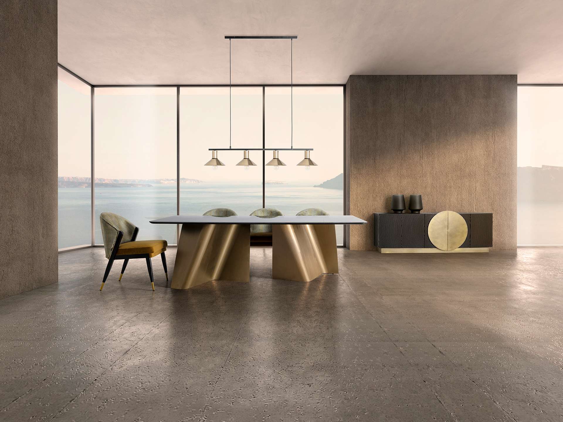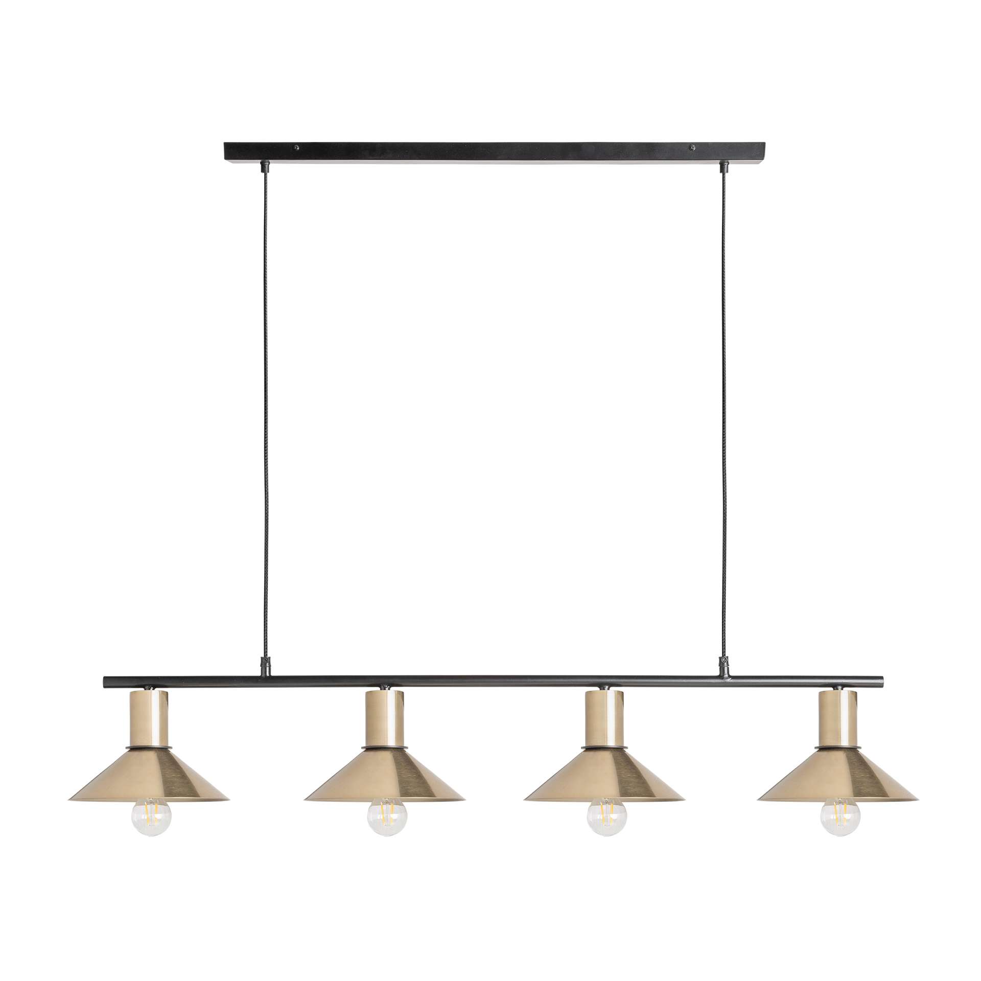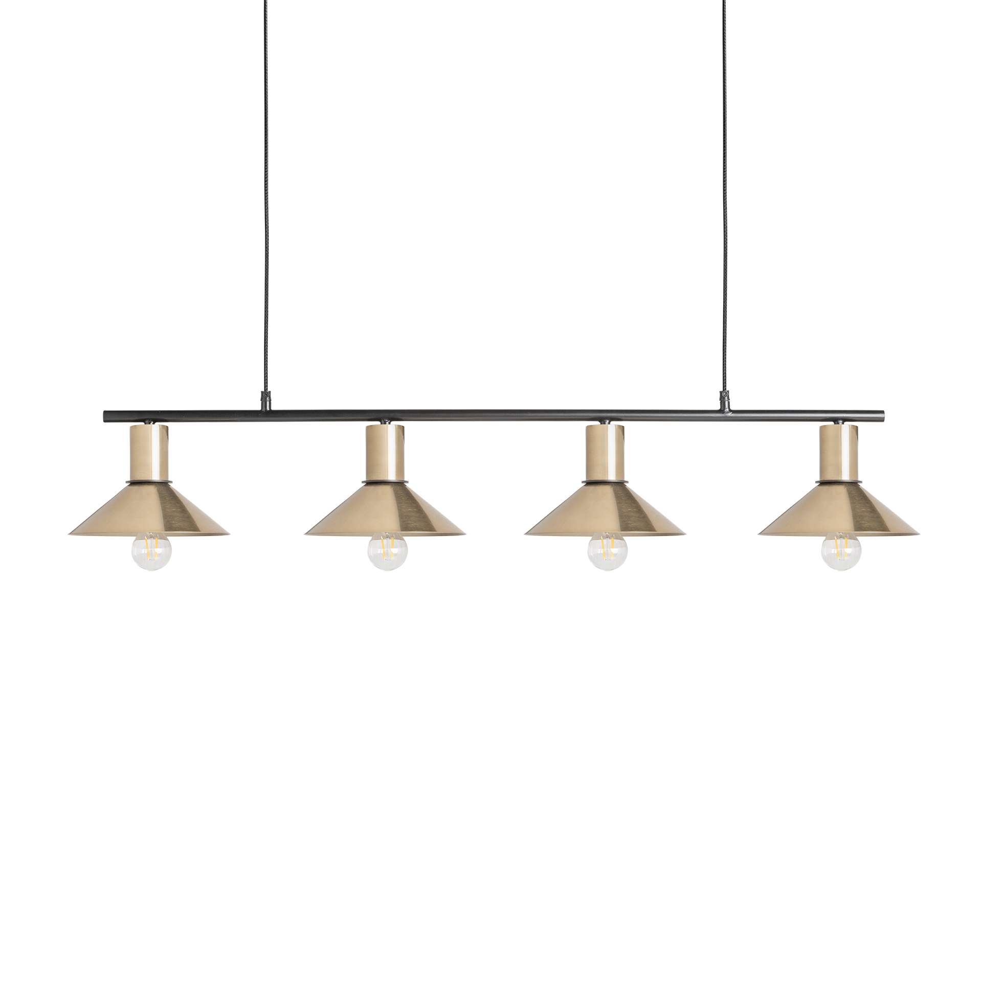Lámpara de techo de hierro, perteneciente a la familia de lámparas de techo, color oro, de estilo art deco. Medidas: 129 largo x 24 ancho x 114 alto y peso 4,7 kg. Incluye anclaje. No incluye bombillas.
