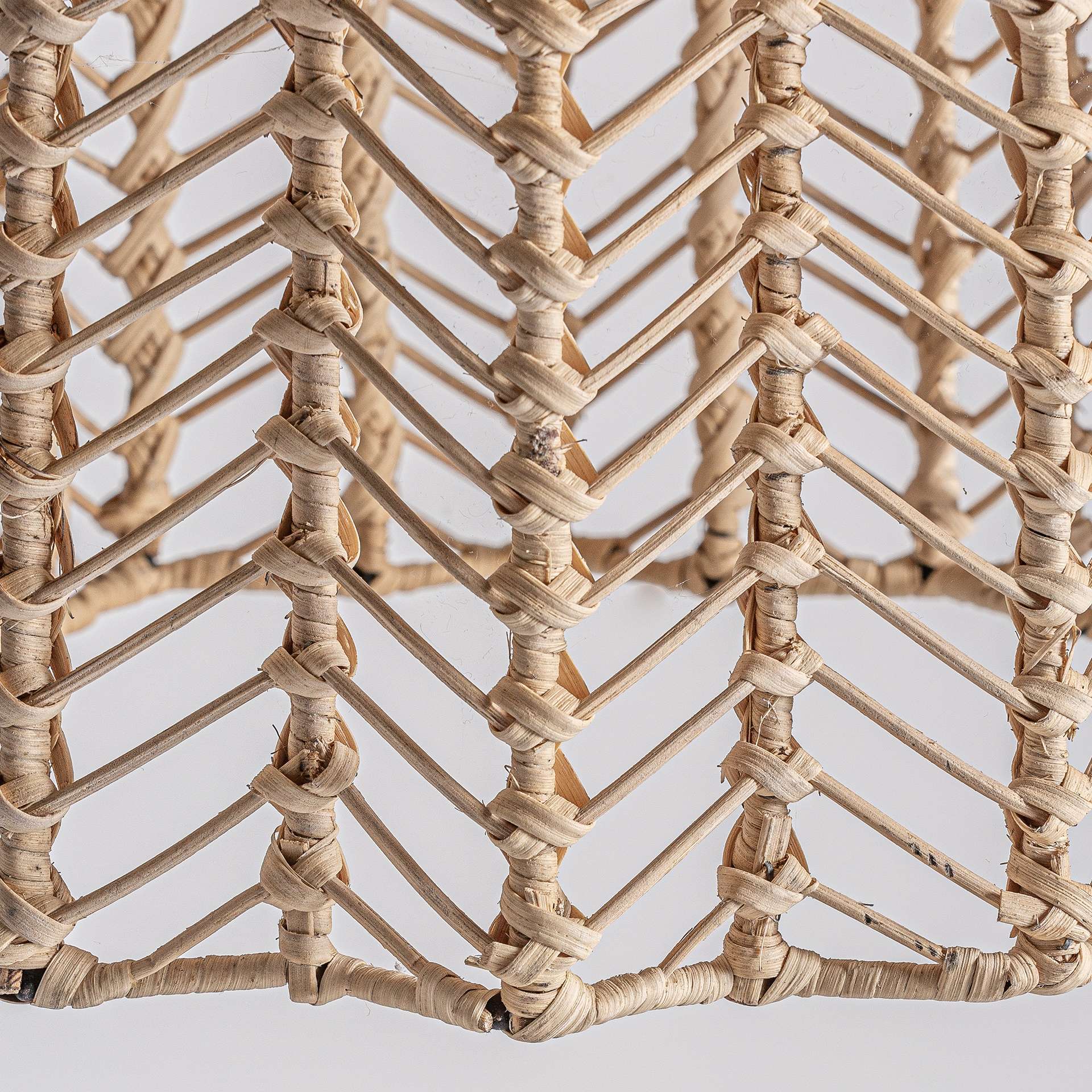 Lámpara de techo de ratán y acero, perteneciente a la familia de lámparas de techo, color natural, de estilo art deco. Medidas: 42 largo x 42 ancho x 32 alto y peso 1,2 kg.