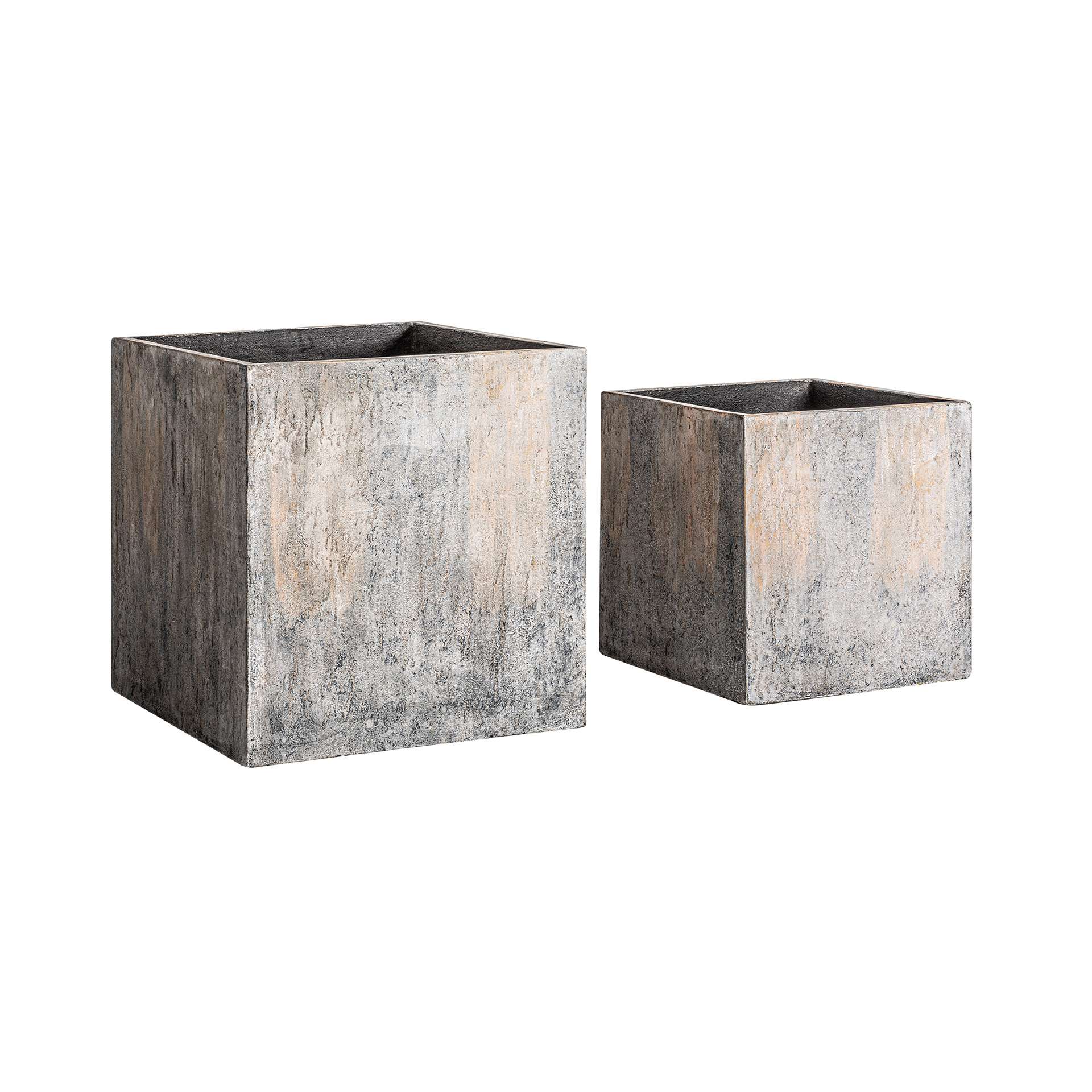 Macetero j 2 Arvit de estilo industrial fabricado en terracota en color tonos neutros con acabado patina. Producto apilable.