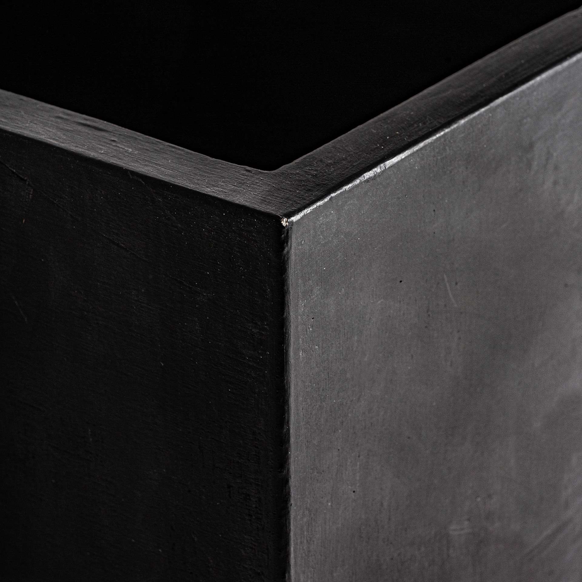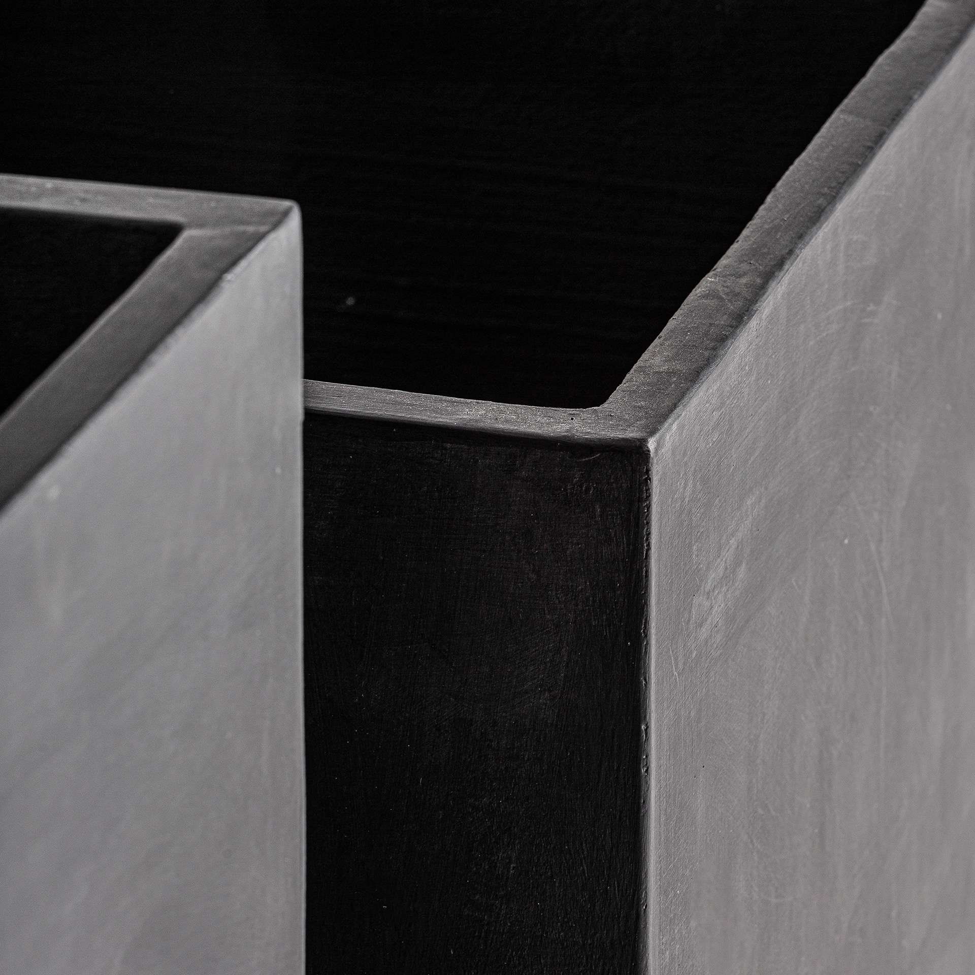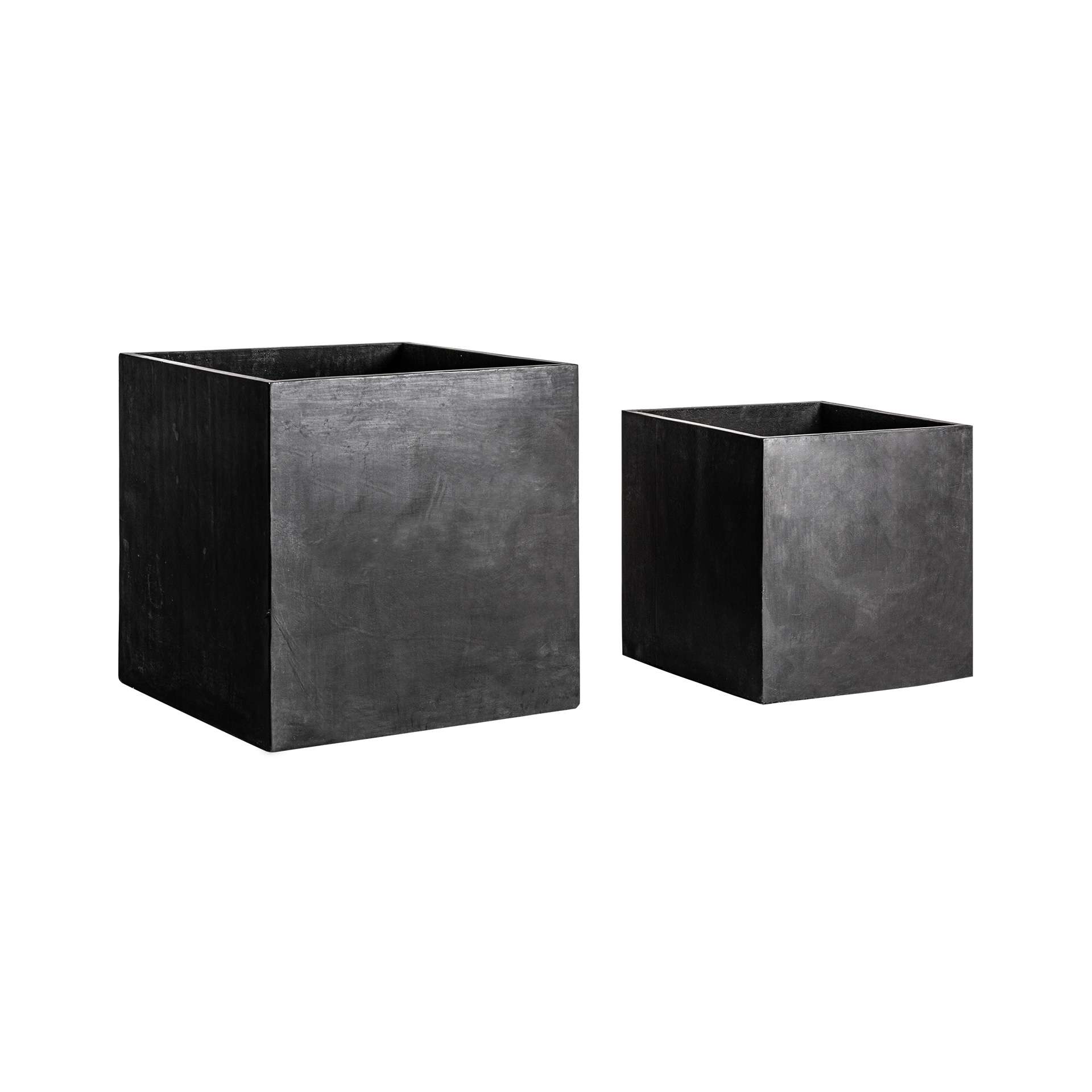 Macetero j 2 Elio de estilo industrial fabricado en terracota en color negro.