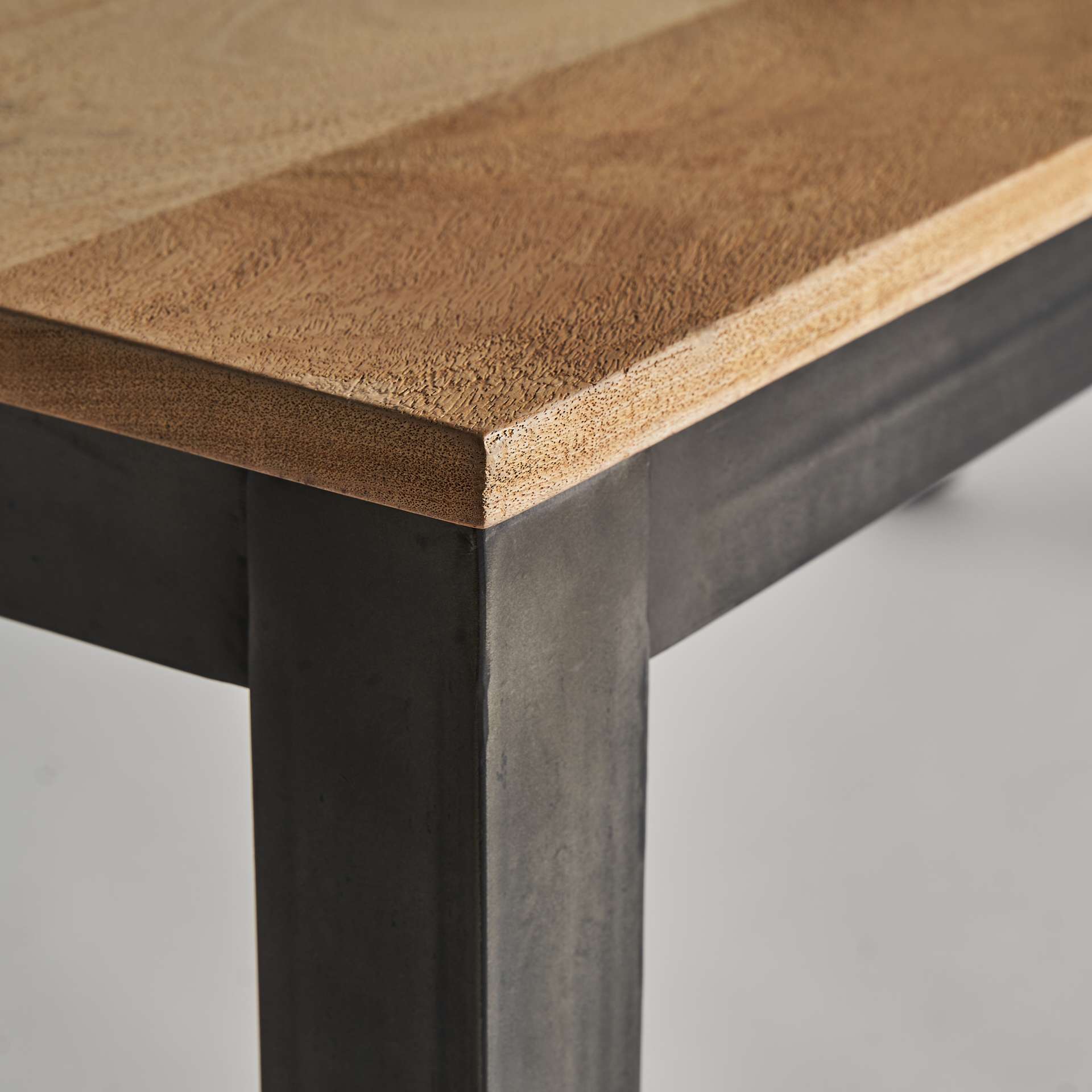 Mesa comedor de madera de mango y hierro, perteneciente a la familia de mesas de comedor, color negro/natural, de estilo industrial. Medidas: 188 largo x 93 ancho x 79 alto y peso 57 kg. Desmontable.