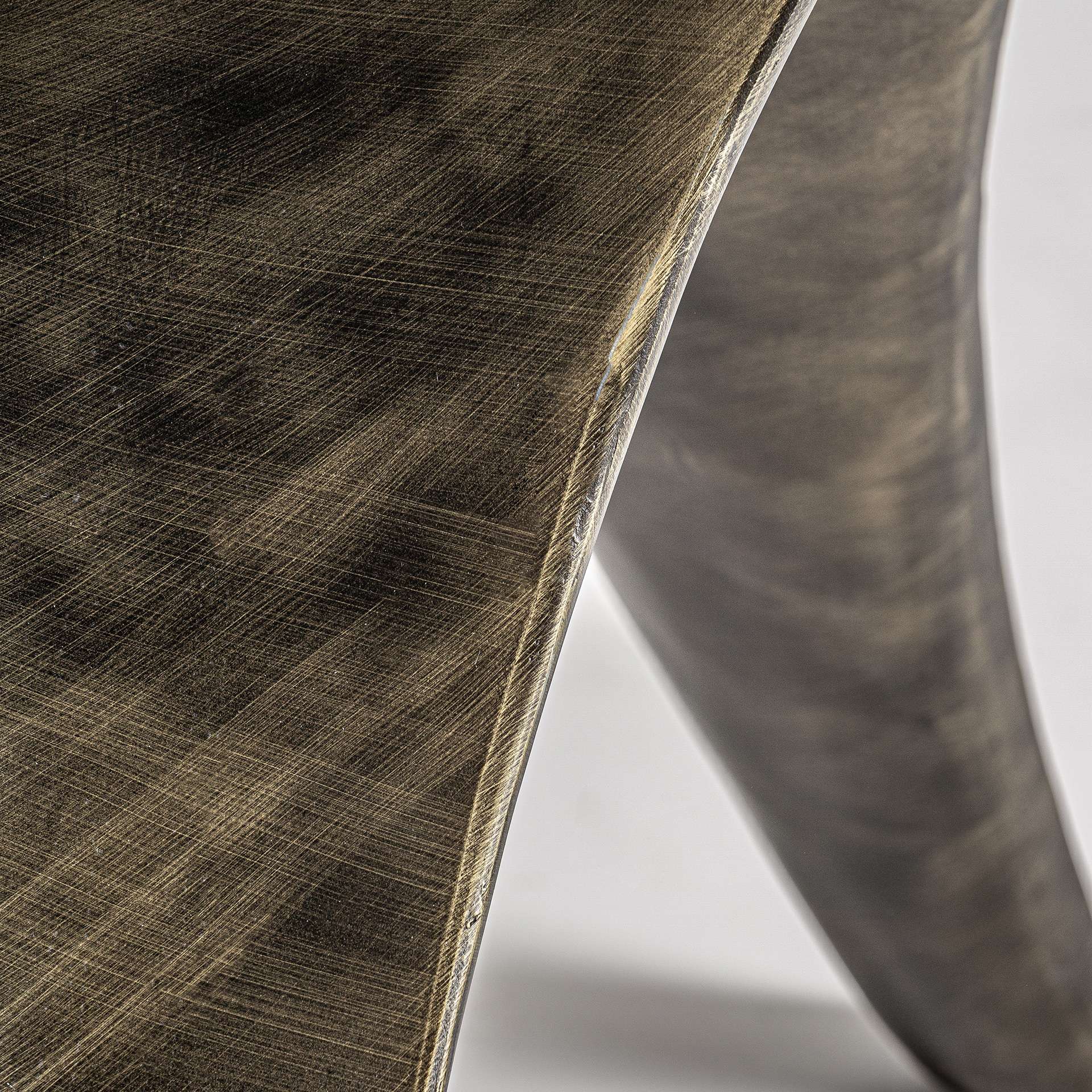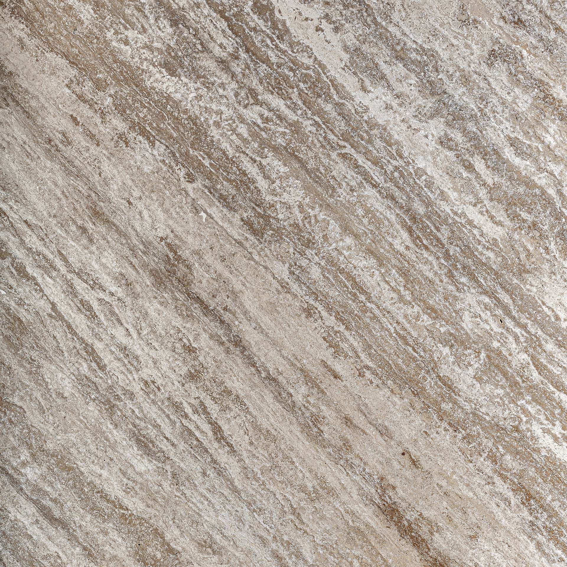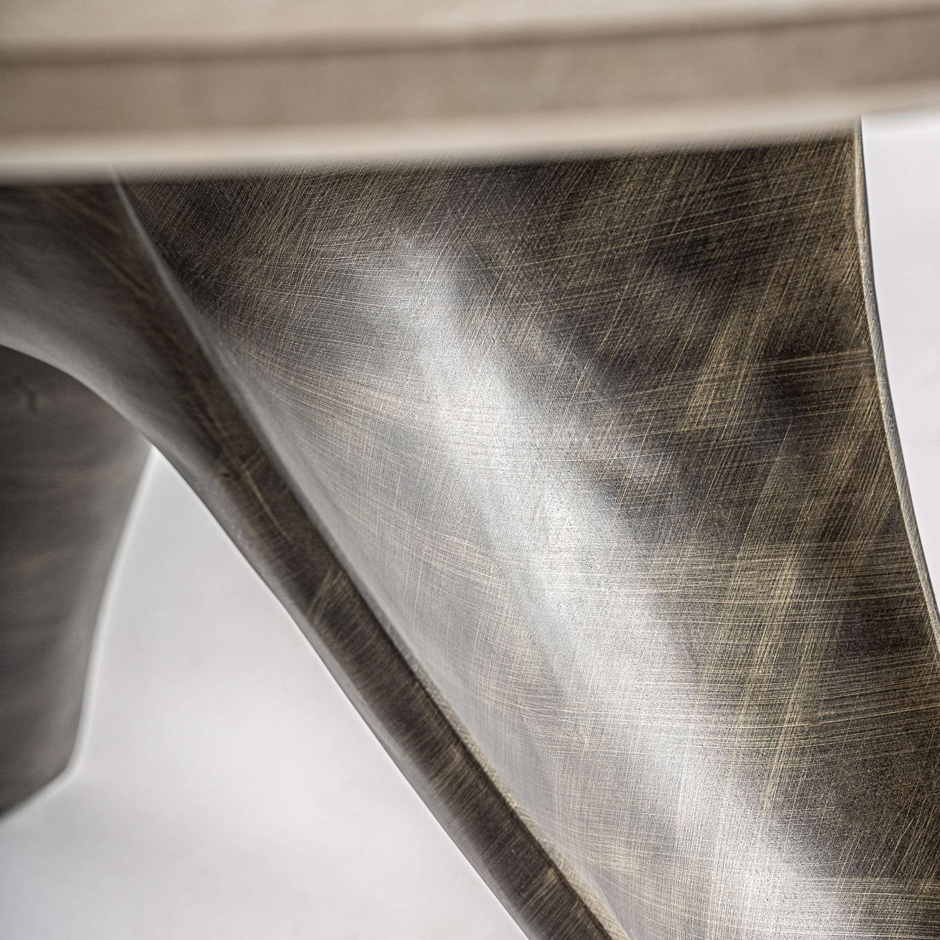 Mesa comedor Laize de estilo art deco fabricado en travertino en color beige combinado con acero inoxidable en color oro con acabado viejo. Producto desmontable.