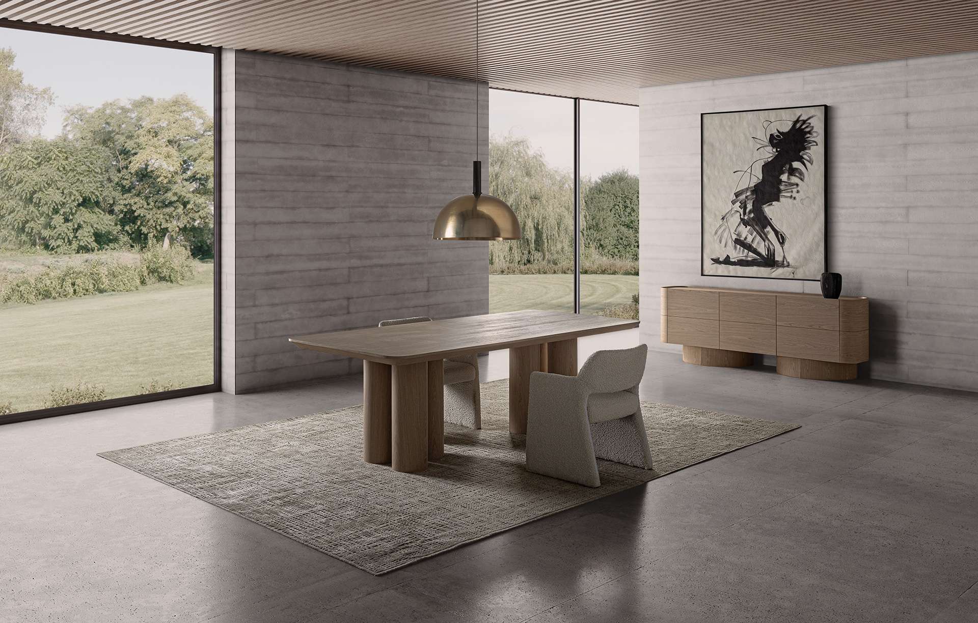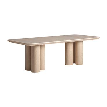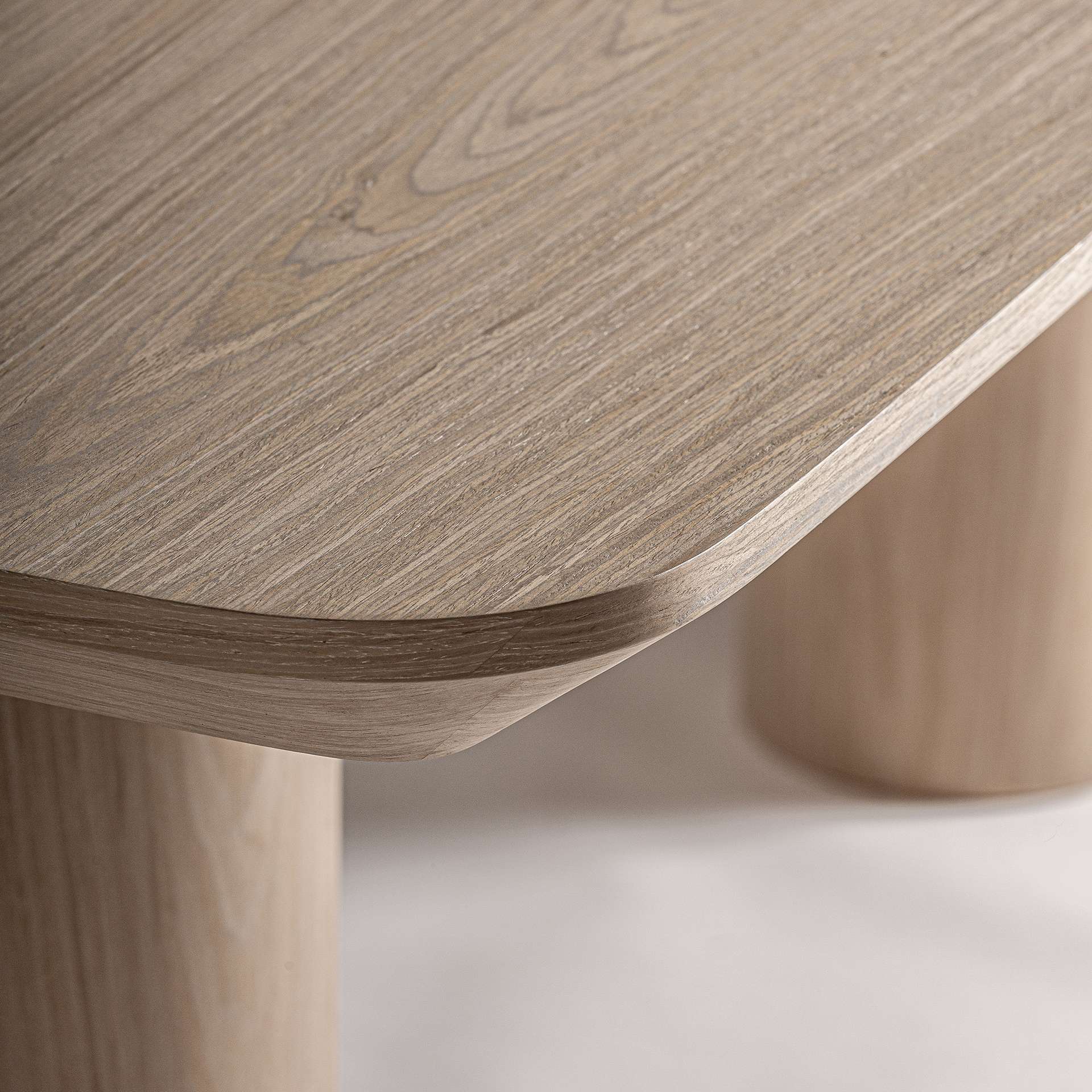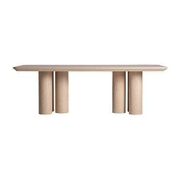 Mesa comedor Prayssac de estilo art deco, fabricado en chapa de roble en color beige, combinado con madera contrachapada y madera dm.