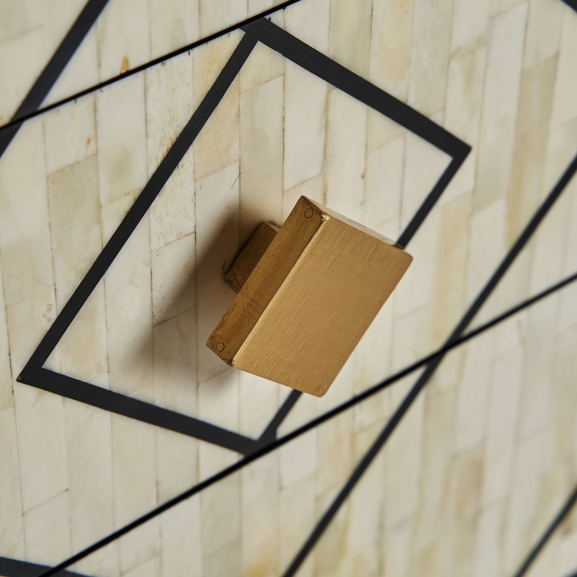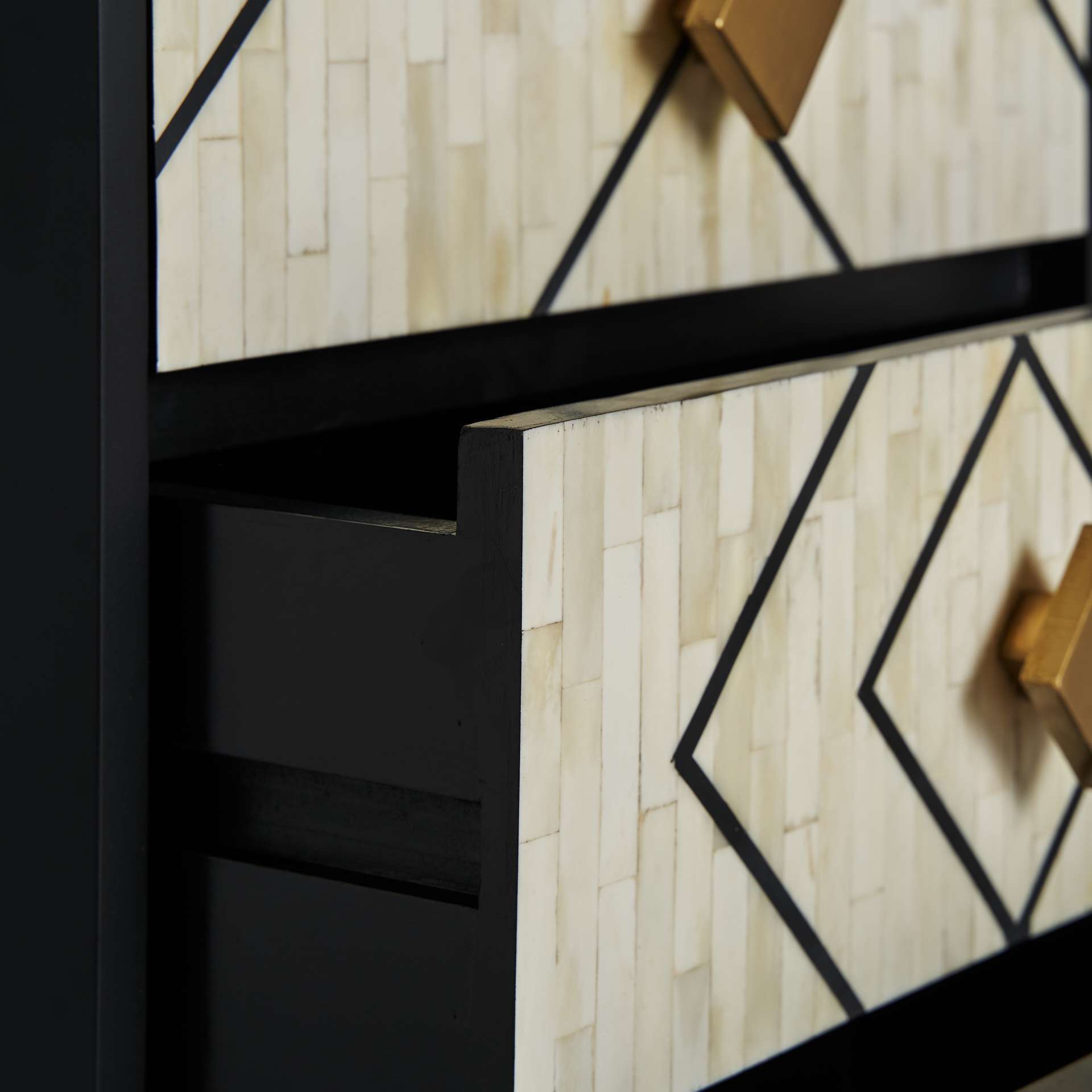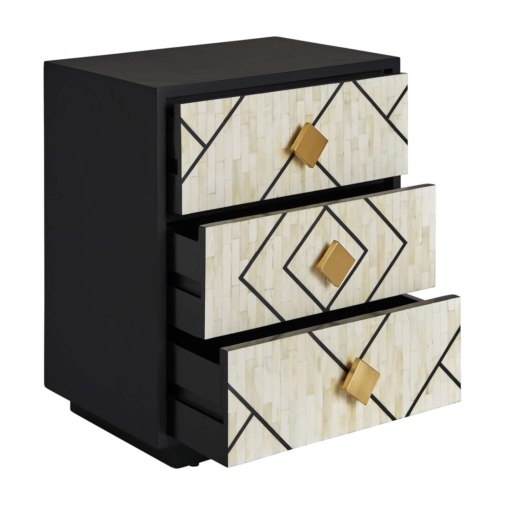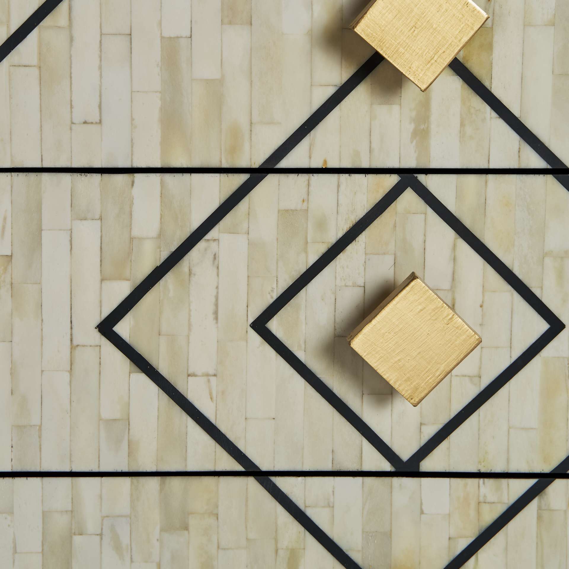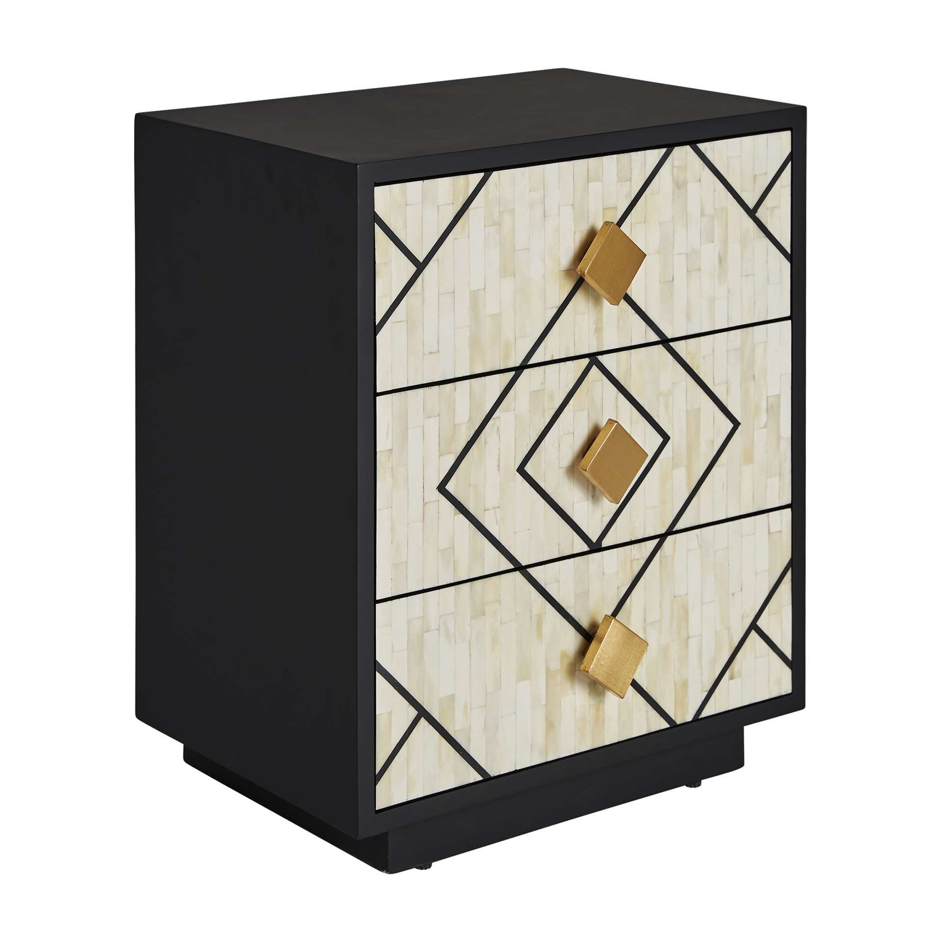 Mesita de hierro y hueso, perteneciente a la familia de mesitas, color negro/blanco/oro, de estilo art deco. Medidas: 50 largo x 35 ancho x 60 alto y peso 25,3 kg.