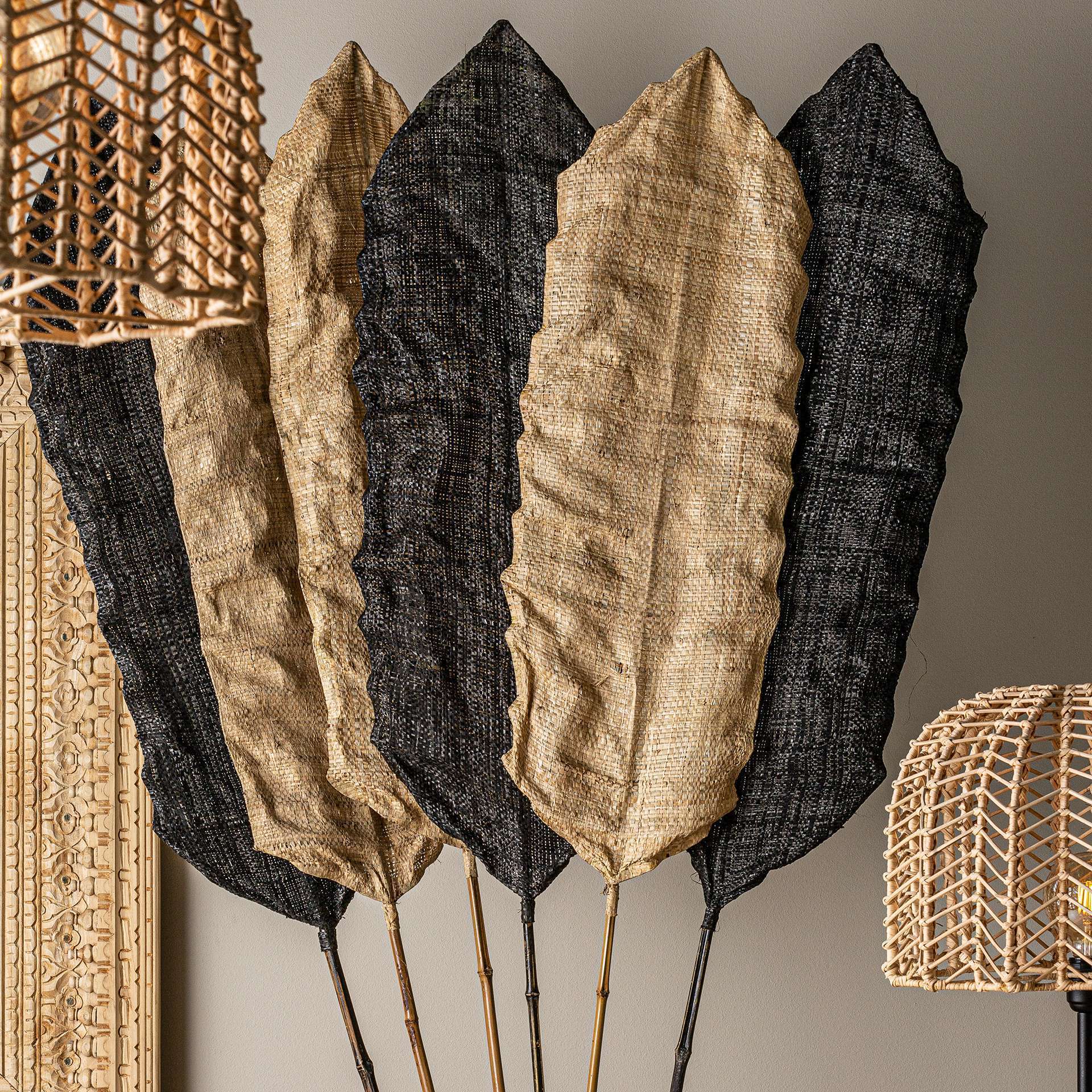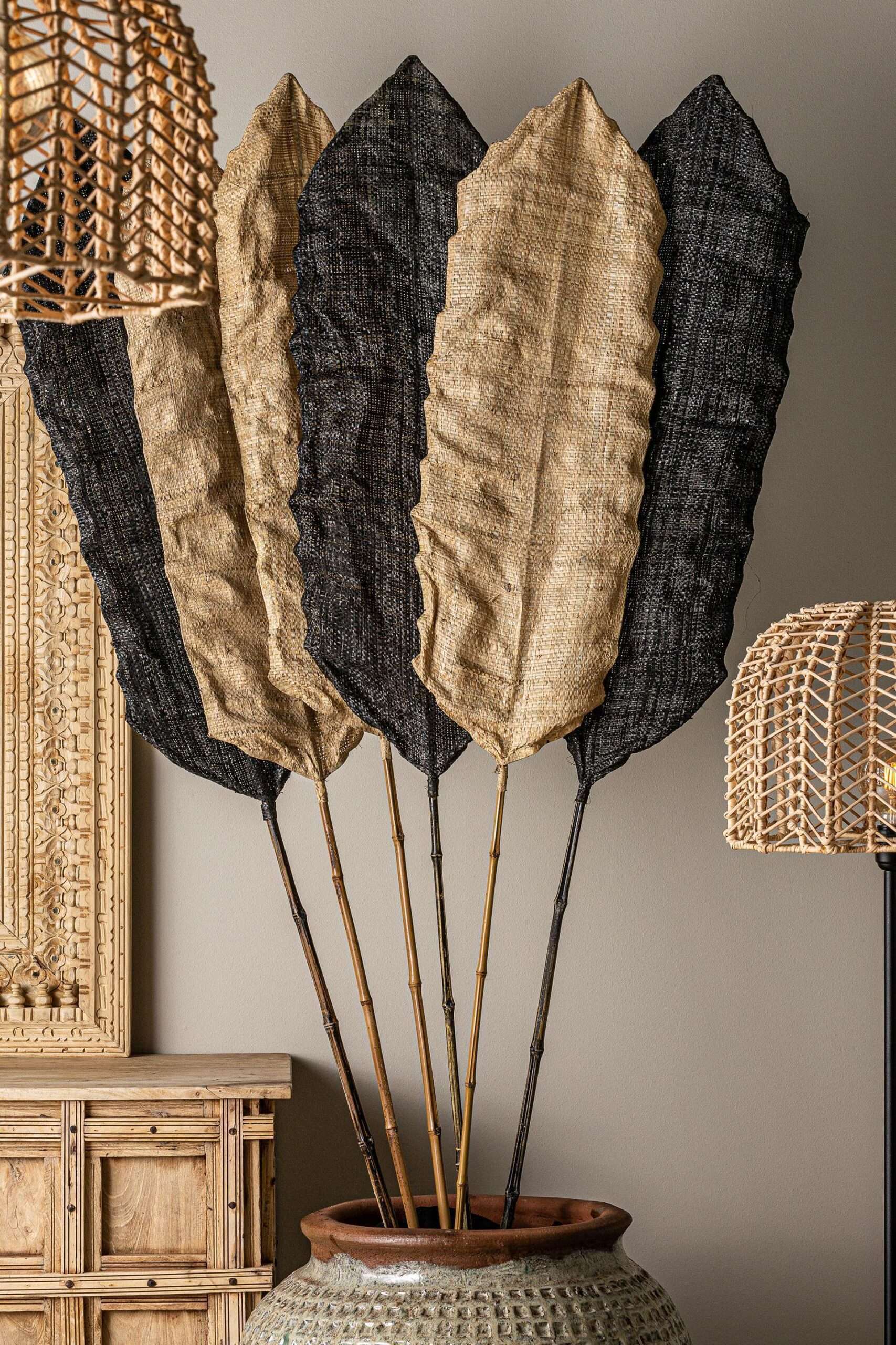 Rama decorativa de fibra natural, perteneciente a la familia de plantas/flores/cañas decorativas, color negro/natural, de estilo étnico. Medidas: 33 largo x 2 ancho x 200 alto y peso 1,2 kg.