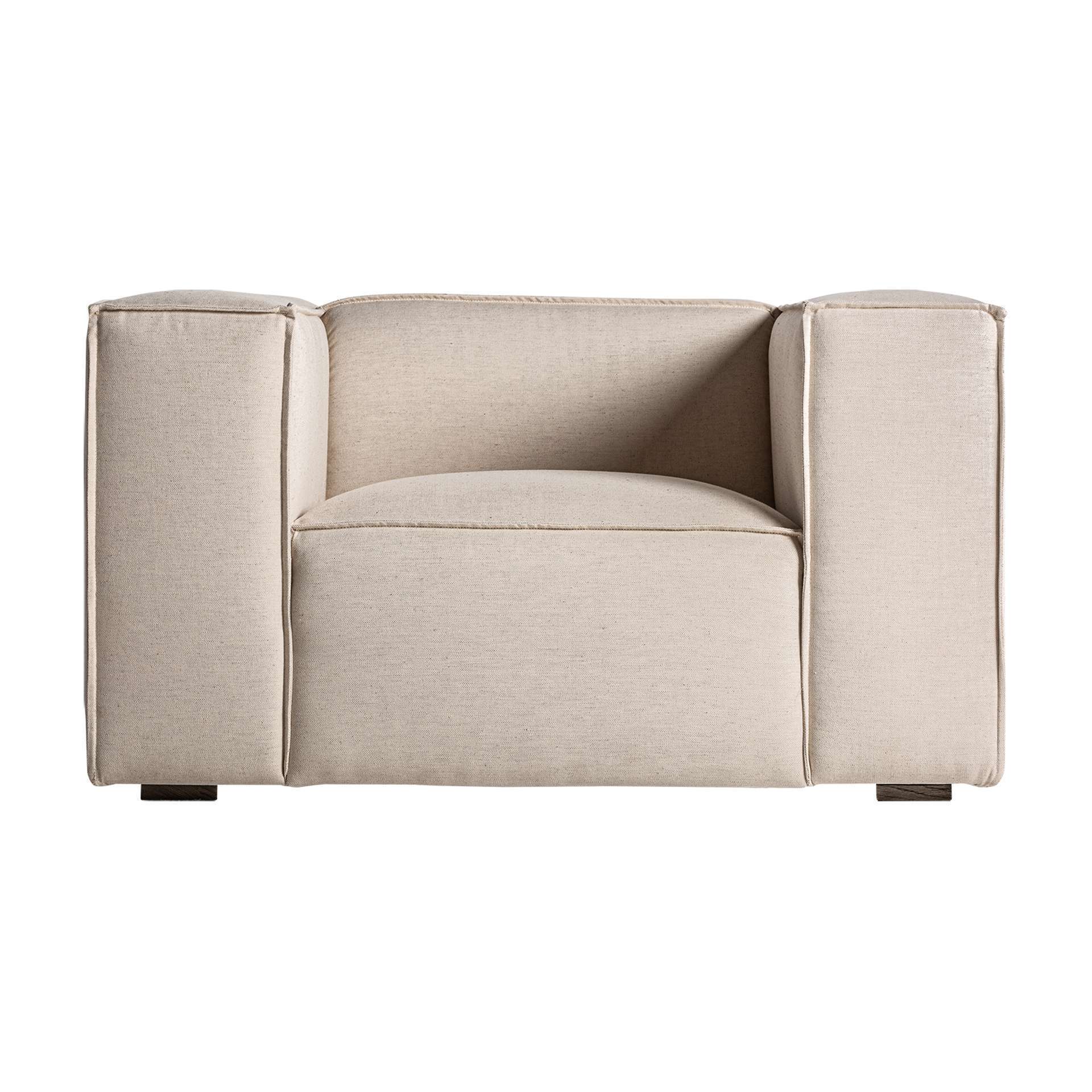 Sillón de madera de fresno, perteneciente a la familia de sillones, color blanco roto, de estilo art deco. Medidas: 118 largo x 98 ancho x 67 alto y peso 35,8 kg.