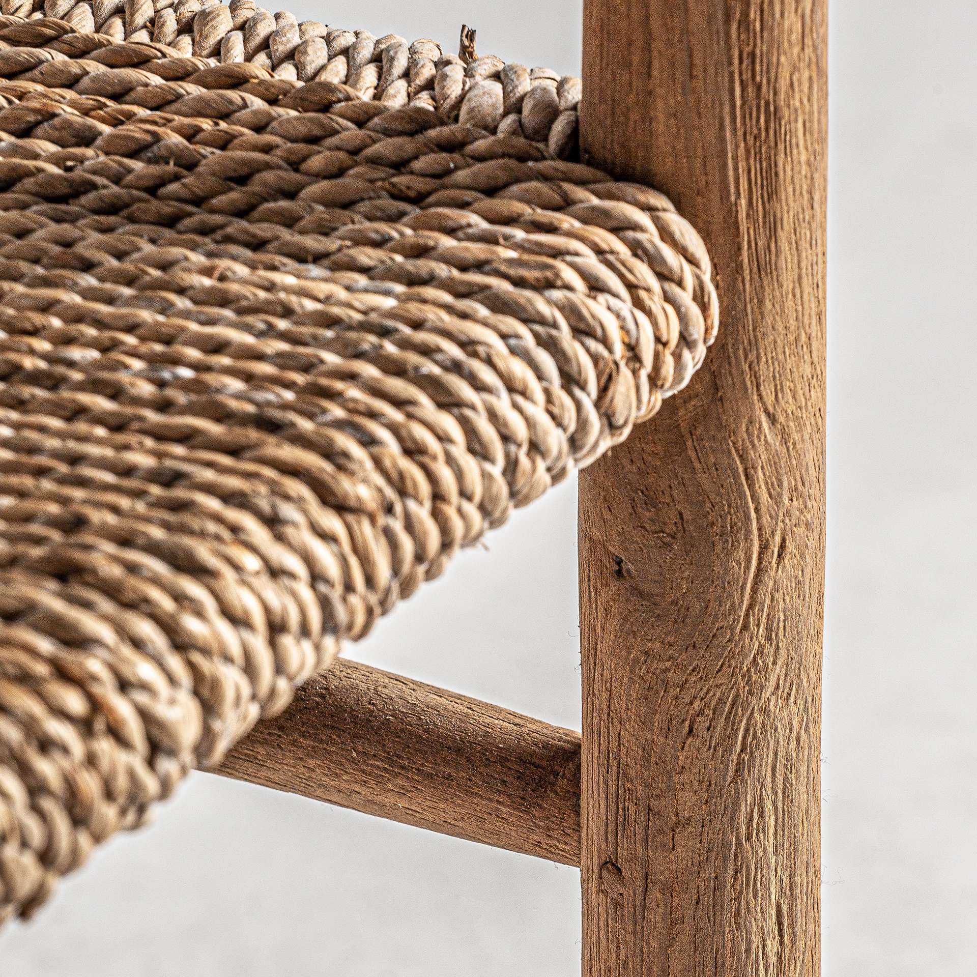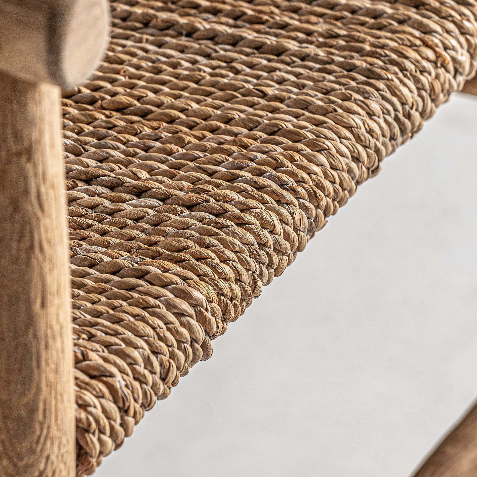 Sillón de madera de teka y fibra natural, perteneciente a la familia de sillas, color natural, de estilo colonial. Medidas: 53 largo x 55 ancho x 80 alto y peso 8,3 kg.