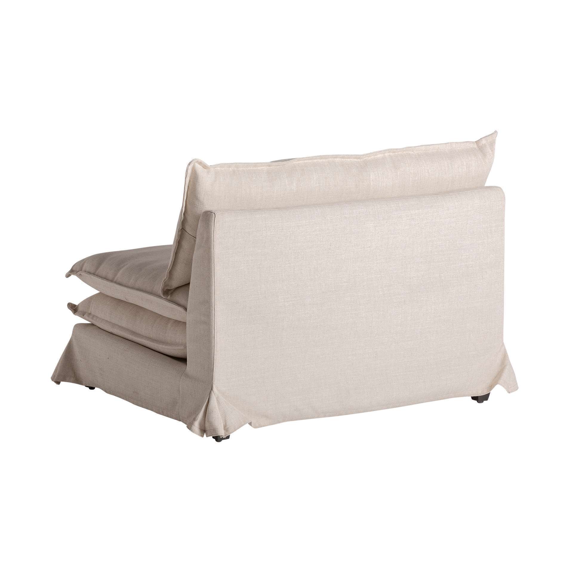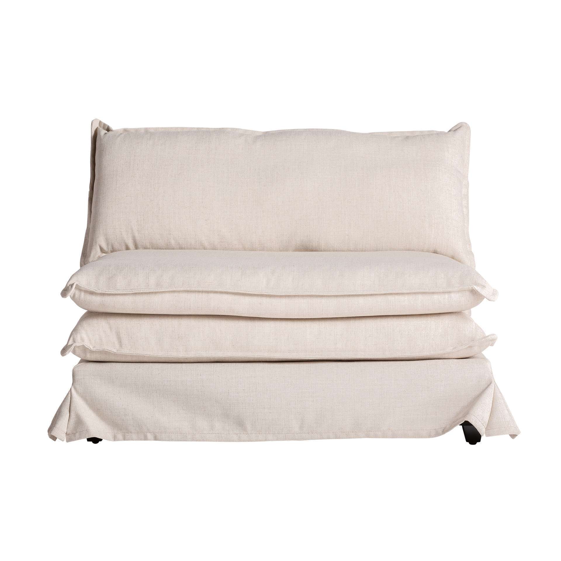 Sillón de madera de pino, perteneciente a la familia de sillones, color blanco roto, de estilo contemporáneo. Medidas: 114 largo x 95 ancho x 87 alto y peso 23,8 kg. Desmontable.
