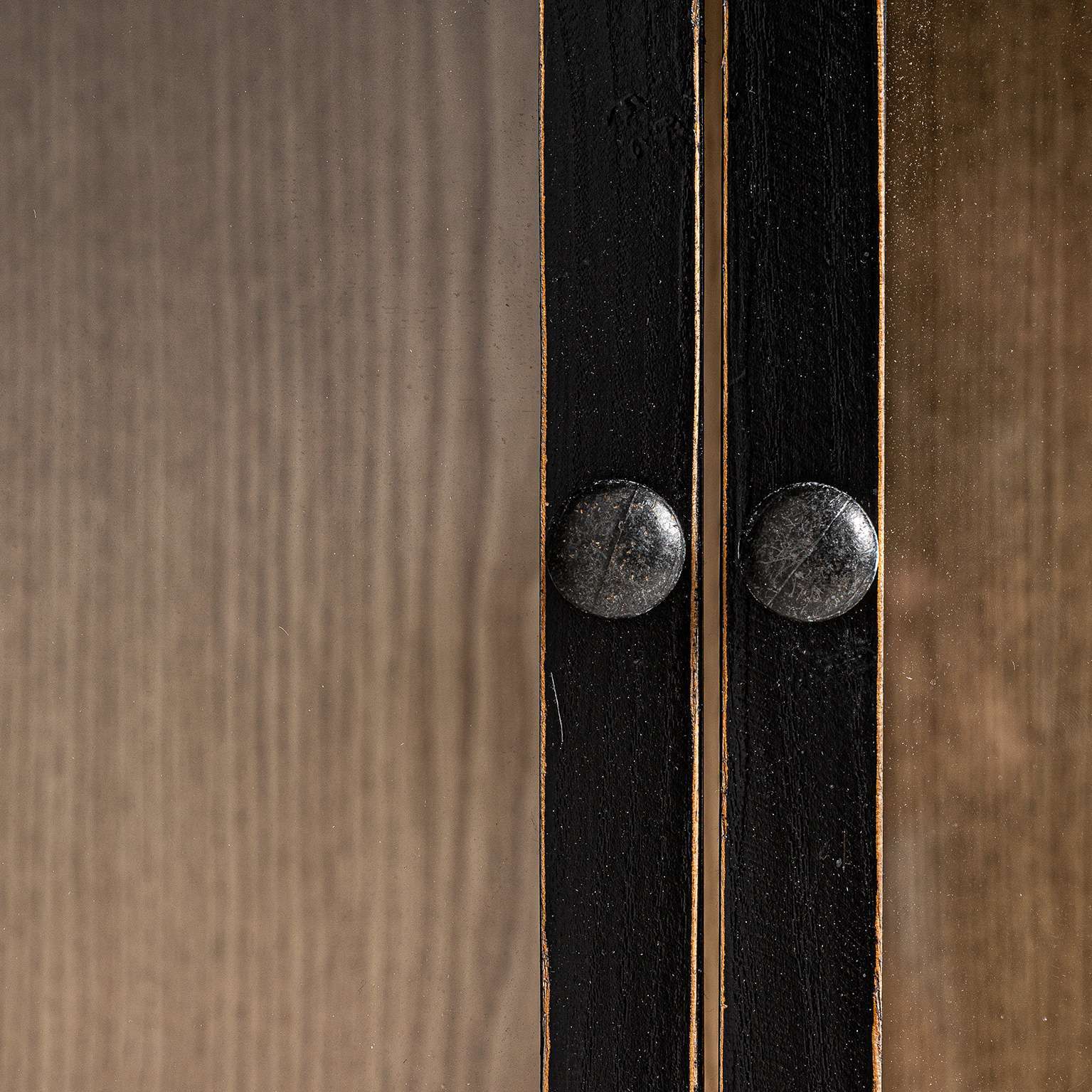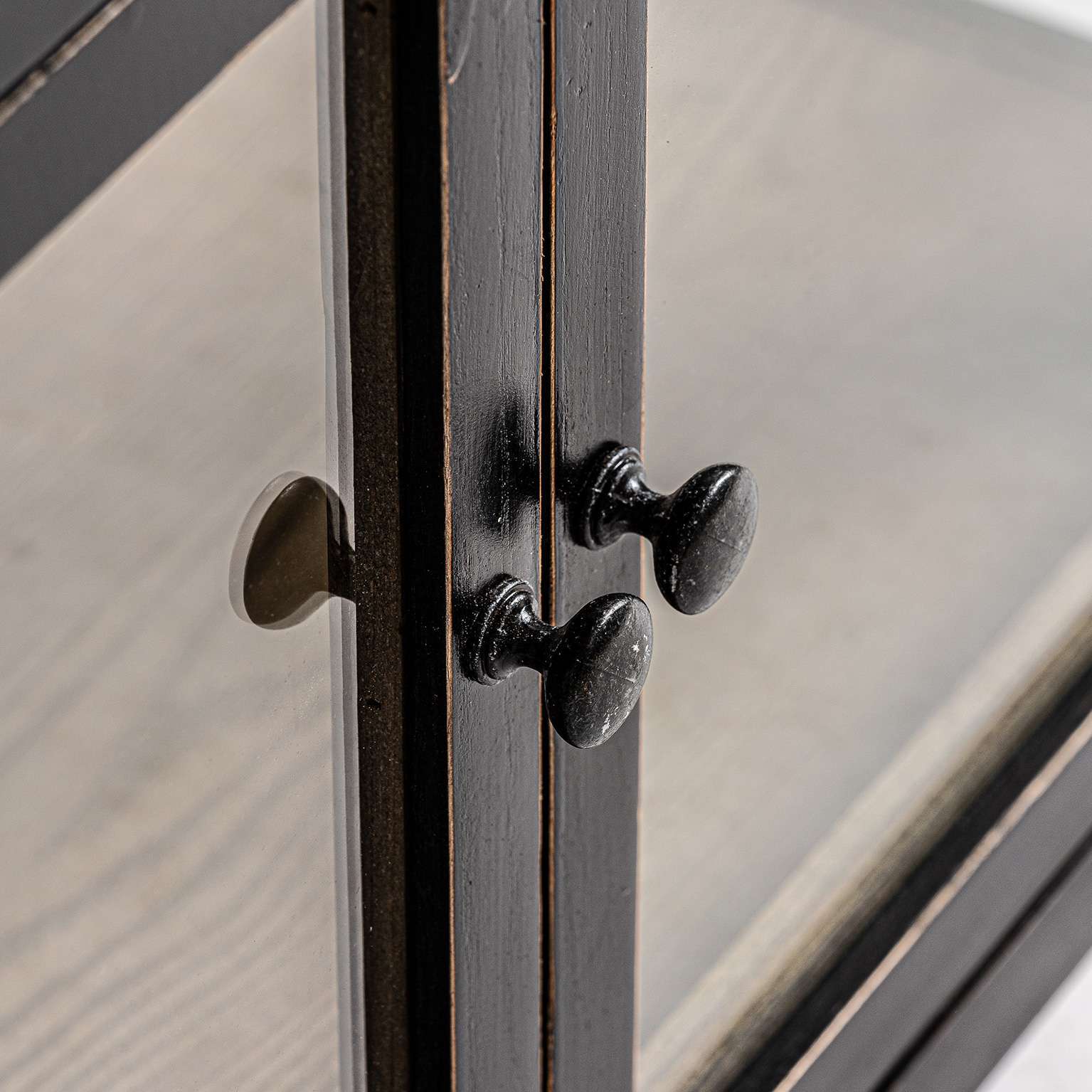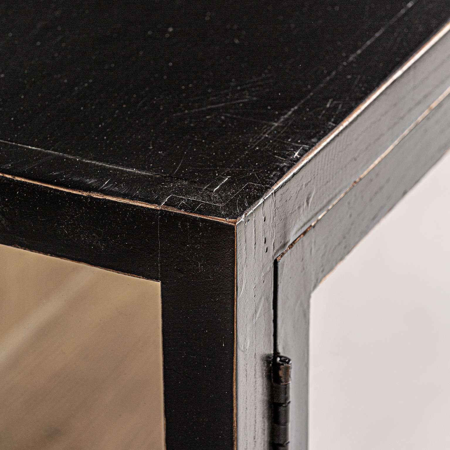 Vitrina modular de madera de pino reciclado y cristal, perteneciente a la familia de alacenas y vitrinas, color negro/natural, de estilo colonial. Medidas: 85 largo x 40 ancho x 85 alto y peso 23,3 kg.