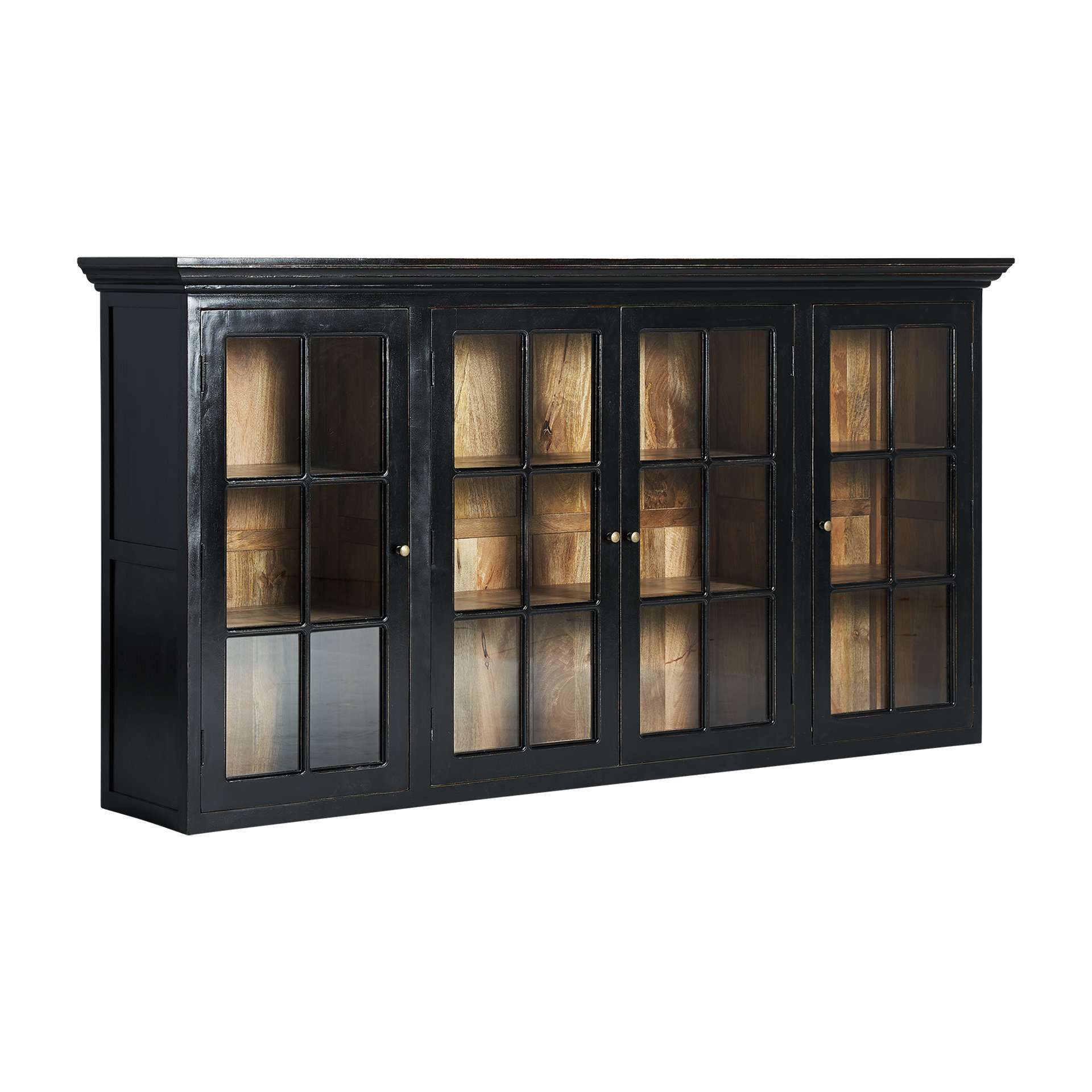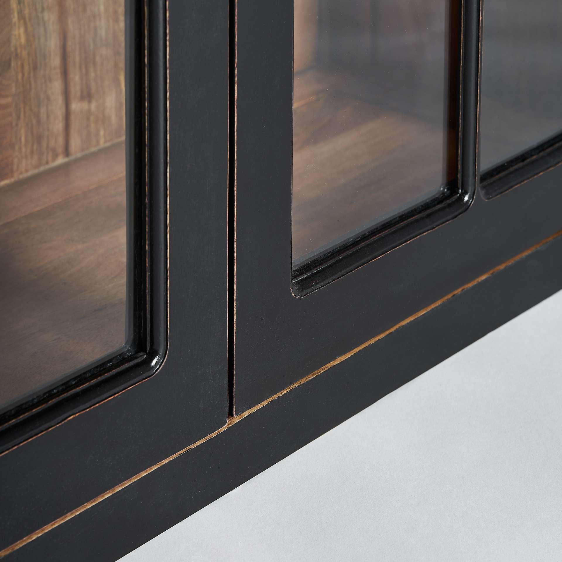 Vitrina modular zenica de estilo colonial fabricado en madera de mango en color negra combinado con cristal. Compatible con: 33009.
