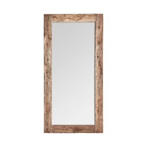 Este espejo destaca por su marco de madera durian tallada, un material reconocido por su resistencia y atractivo aspecto. Su tonalidad natural resalta las vetas y texturas orgánicas de la madera, aportando una sensación de calidez y autenticidad al ambiente.