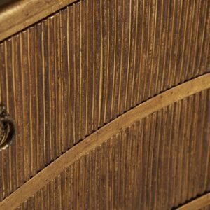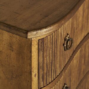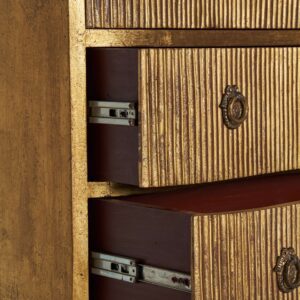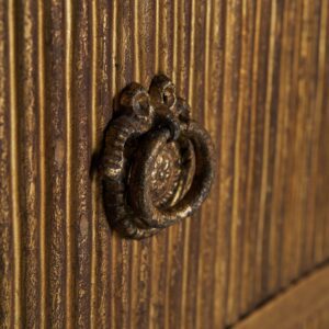 La Cómoda Vernon está fabricada en madera de mango, un material conocido por su resistencia y durabilidad, combinado con detalles en hierro que realzan su robustez y estética refinada. Su acabado en oro viejo no solo resalta su carácter clásico, sino que también aporta calidez y sofisticación al ambiente.