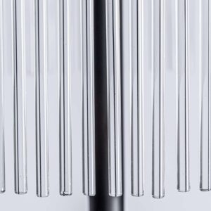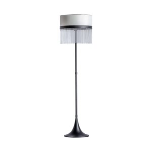 Lámpara de pie, en color negro. Fabricado en cristal, combinado con latón y acrílico. Producto desmontable.